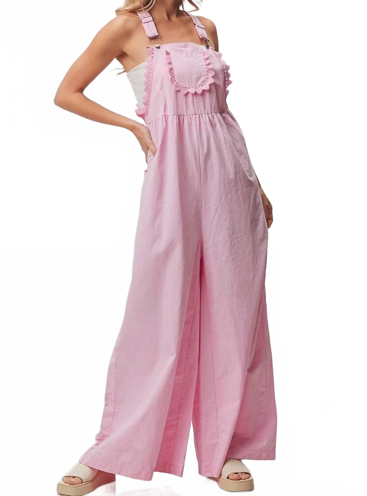 Дополните свой повседневный гардероб кружевным комбинезоном Micheline от BiBi - восхитительным выбором в однотонном розовом цвете для игривого весеннего образа. Этот женский комбинезон с регулируемыми лямками, кружевной отделкой и удобным карманом-кенгуру спереди выполнен из 100% хлопка для комфорта. Застежка на пуговицы; широкие штанины. Машинная стирка, сушка в стиральной машине. Размер соответствует заявленному.