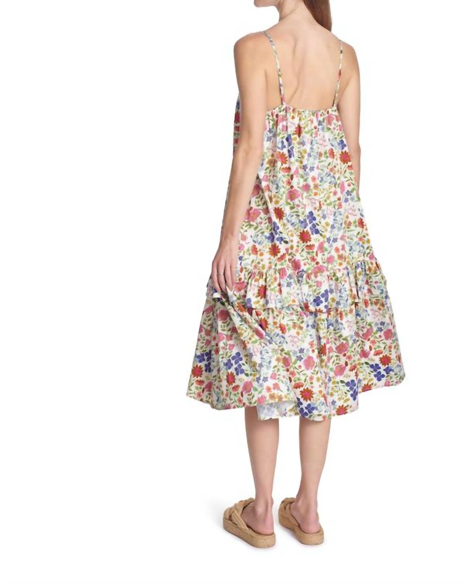 Платье идеальной длины существует. Станьте элегантнее в платье миди Maci с V-образным вырезом от COREY LYNN CALTER, идеально подходящем для весенних вечерних мероприятий. Платье А-силуэта, выполненное на тонких бретельках, украшено шикарным цветочным узором нежно-ванильного оттенка. Ткань - плотный атлас, состоящий из 98% хлопка и 2% спандекса, что обеспечивает идеальную посадку по фигуре. Благодаря удобной застежке-липучке, это платье стильное и комфортное.