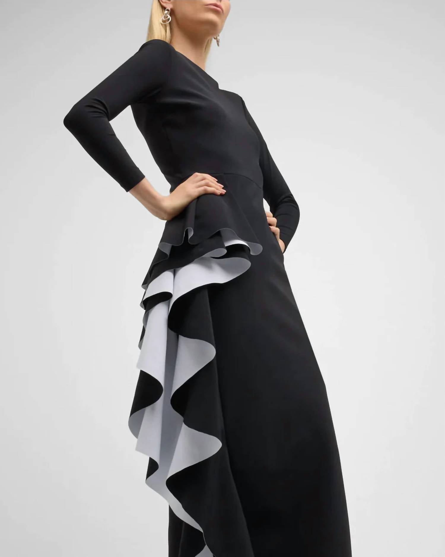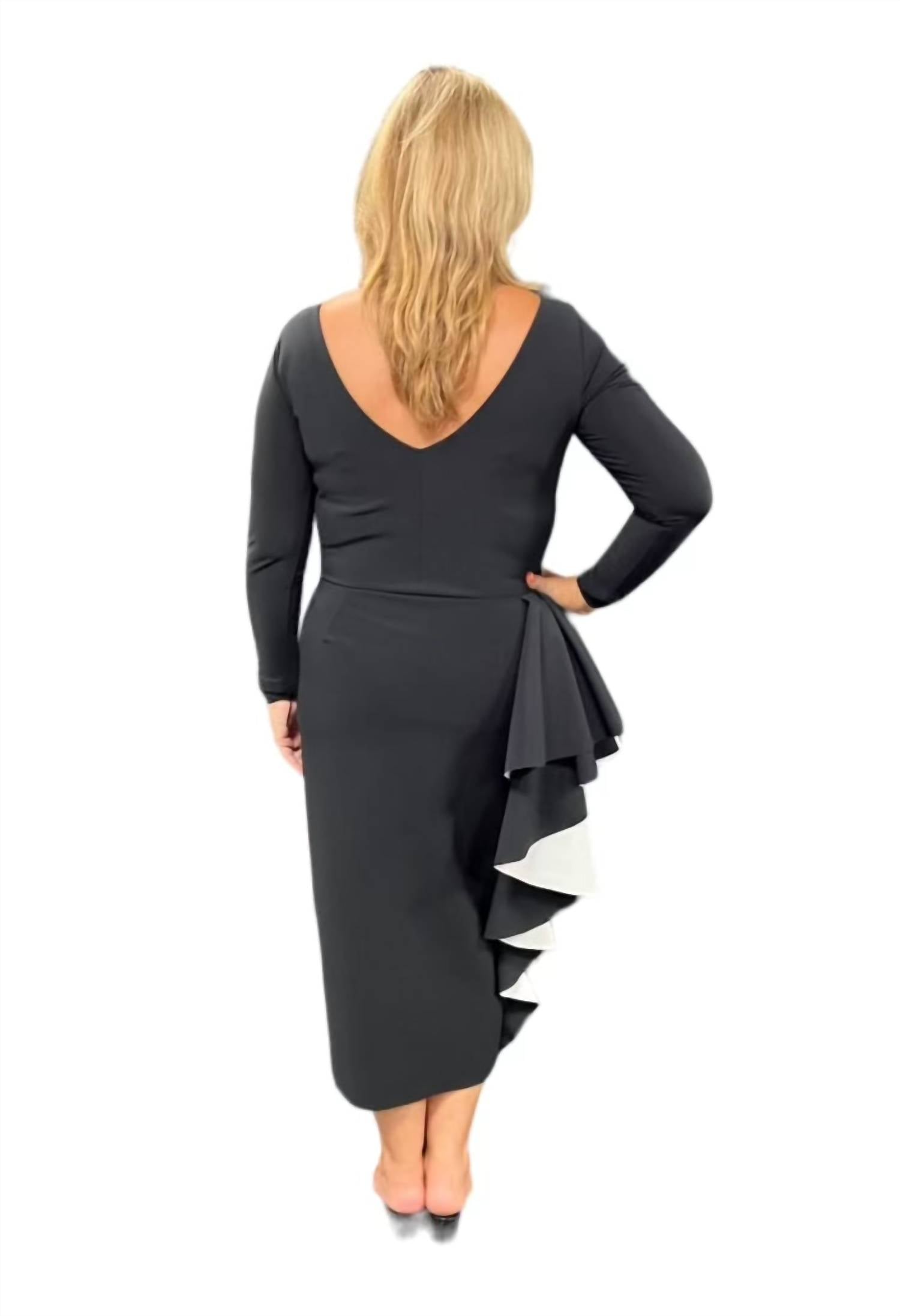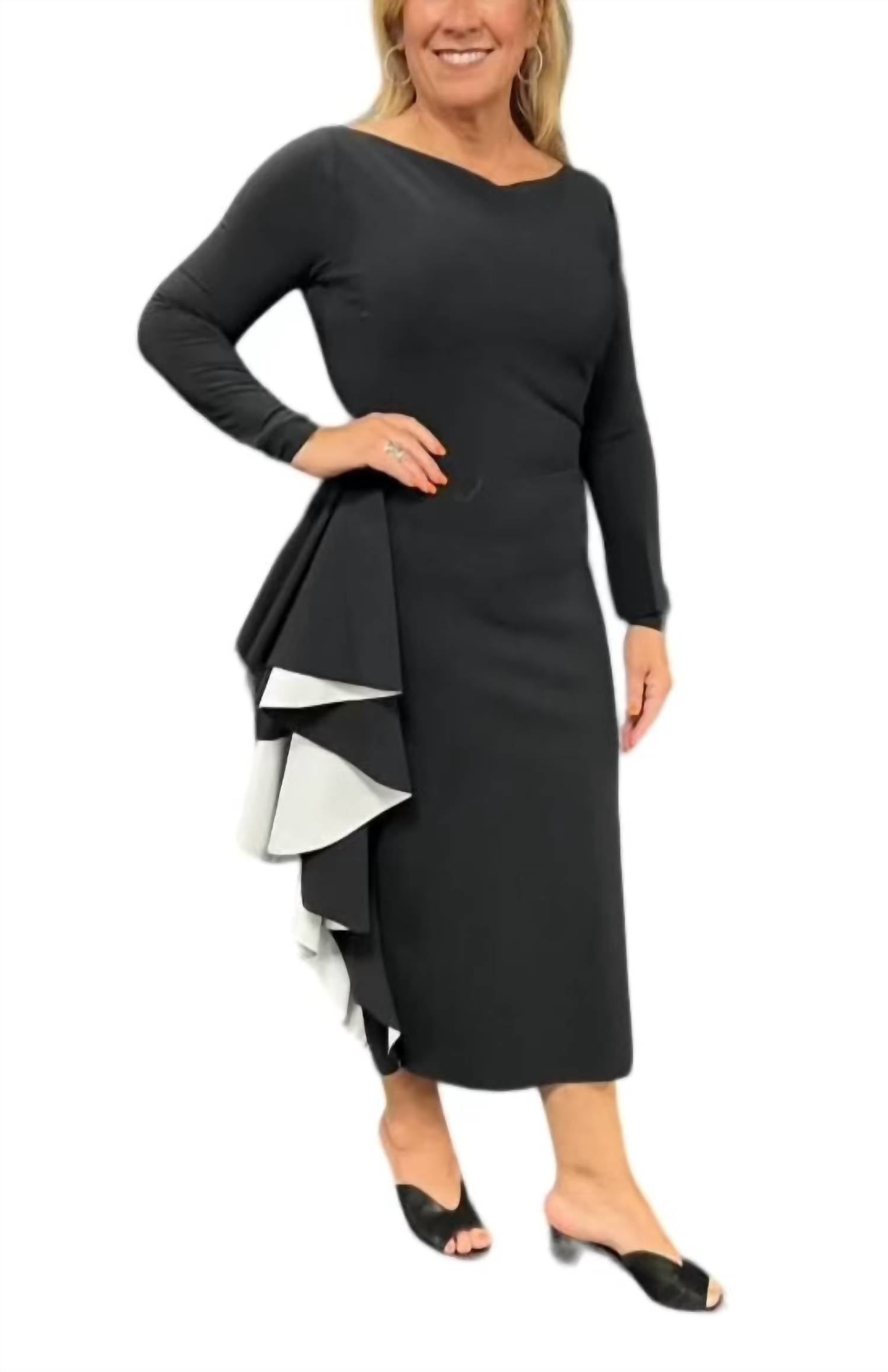 Просто добавьте шлепанцы или мюли, и все готово. Платье-миди Chiara Boni Acheloo из джерси в элегантном черном цвете с изысканным вырезом-лодочкой и элегантными рукавами три четверти. Это платье длиной 150 см, выполненное из смеси нейлона и эластана, отличается потрясающим дизайном колор-блок с каскадными оборками и боковым разрезом до колена. Платье изготовлено в Италии, а облегающий силуэт подчеркивает его вневременную элегантность. Застежка - слип-овер.