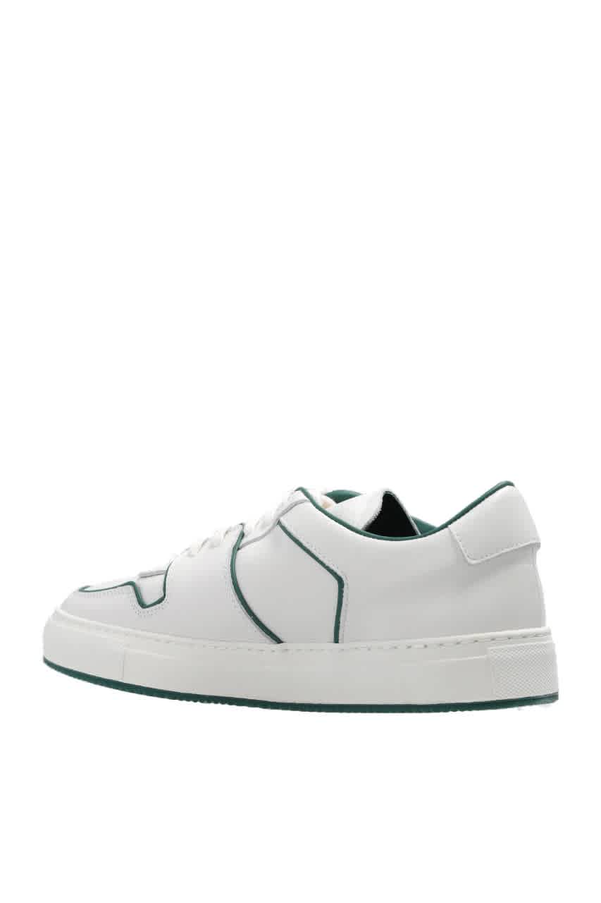 Женские кроссовки Common Projects. Цвет: белый/зеленый. Материал верха: кожа. Материал подкладки: кожа. Низкие женские кроссовки Common Projects Decades на шнуровке. Эти кожаные кроссовки Decades имеют шнуровку, золотистый принт сбоку, перфорированный носок, мягкий язычок и воротник, полированные края контрастного цвета по всей длине и резиновую подошву. Сделано в Италии.
