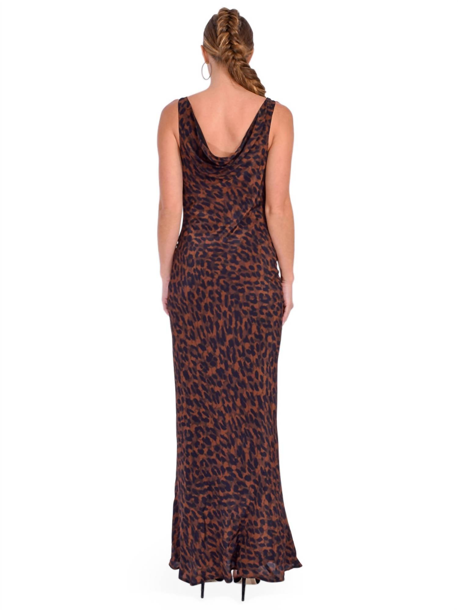 Платье макси с принтом «Эсмеральда» от Карины Гримальди приковывает взгляды окружающих - это шикарное сочетание изысканности и очарования. Это платье макси без рукавов с соблазнительным коричнево-черным анималистичным узором выполнено из роскошного полиэстера. Для сохранения его безупречного качества допускается только химчистка. На модели размер XS.