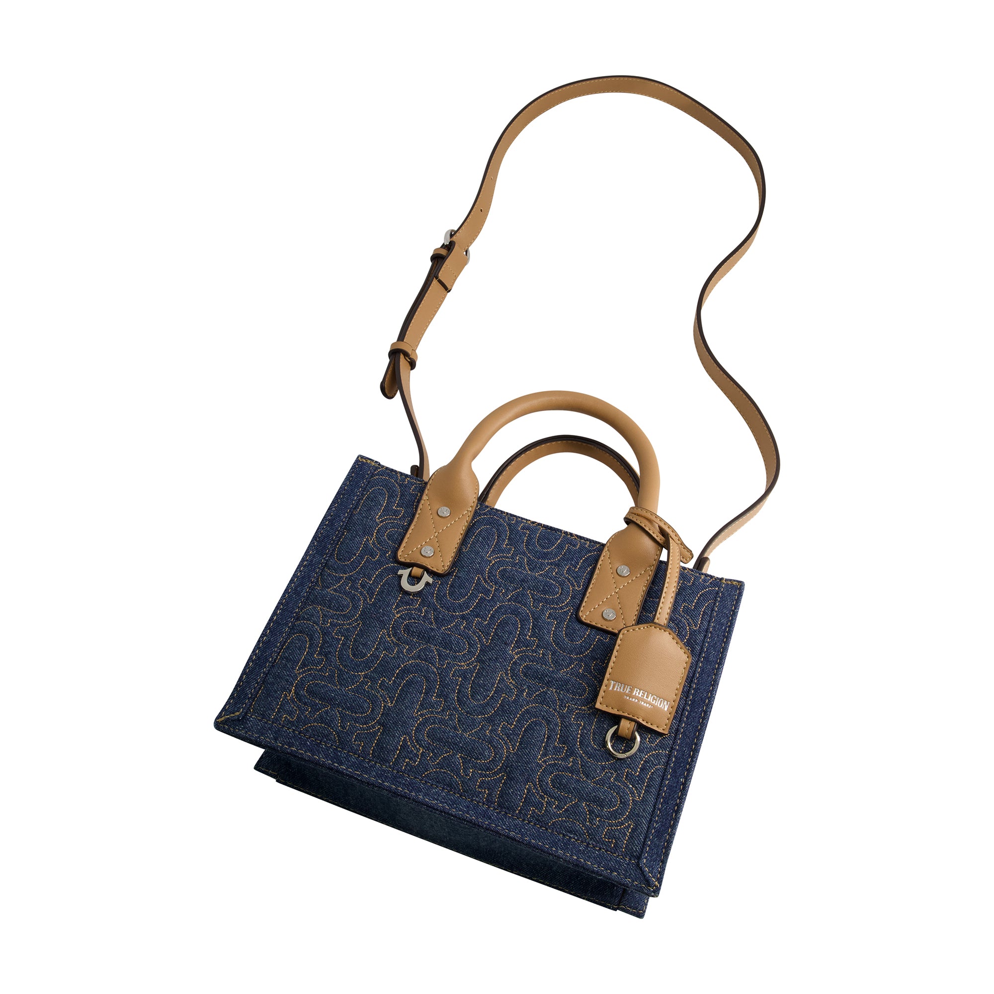 Современная стеганая сумка-шоппер с подковой True Religion, синий 7 376₽