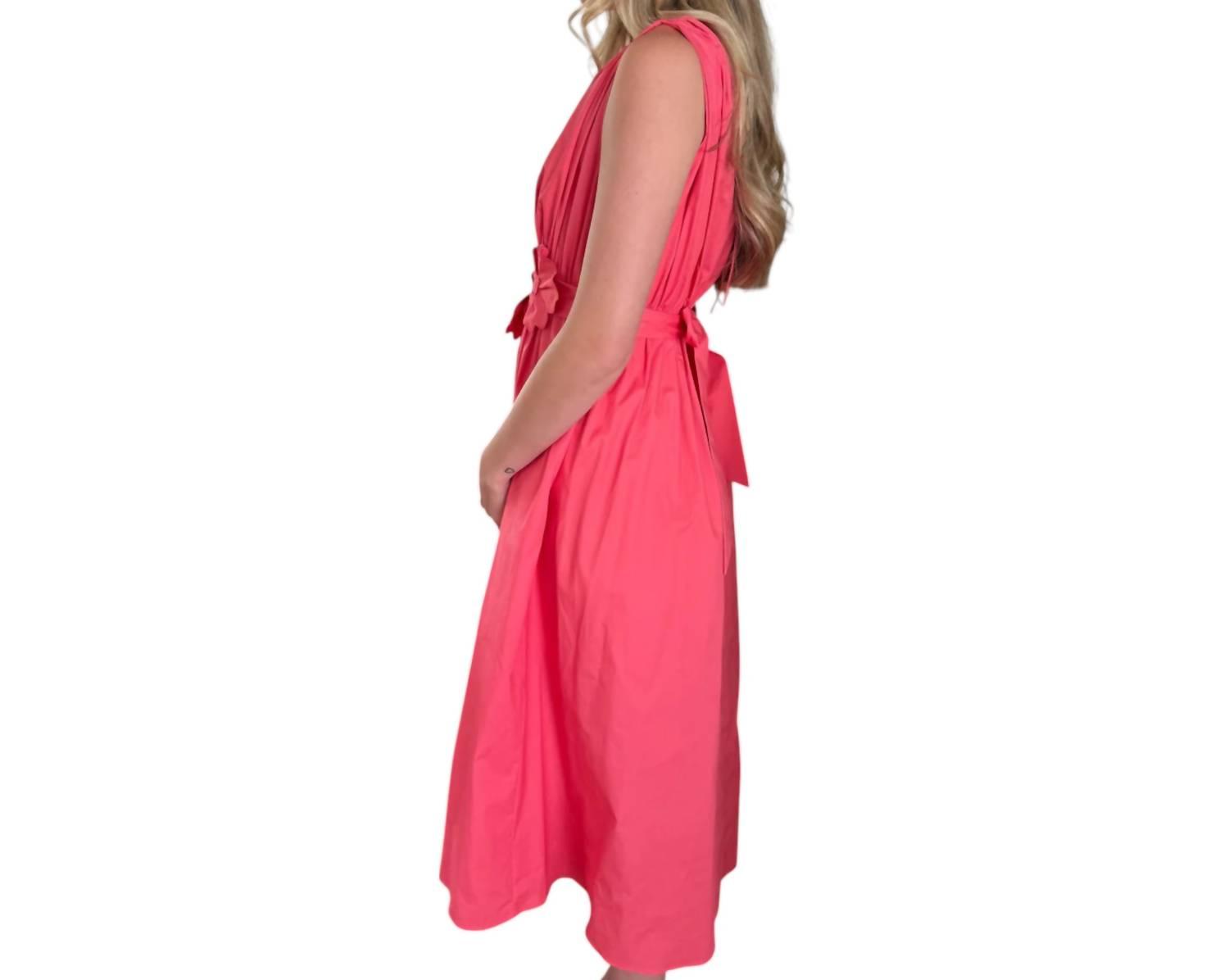 Платье макси Ilona от Lucy Paris, одновременно милое и удобное. Представляем платье макси Ilona от Lucy Paris, выполненное в ярком коралловом оттенке и идеально подходящее для вашего весеннего гардероба. Это платье А-силуэта без рукавов выполнено из дышащего хлопка с шикарным цветочным узором. V-образный вырез, удобные карманы и стильная завязка делают его идеальным выбором для отпуска. Насладитесь безмятежной роскошью в этом универсальном платье макси.