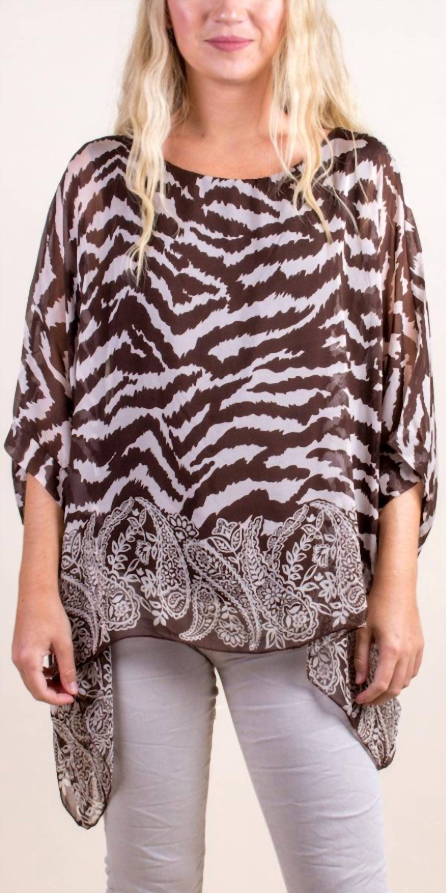 Ощутите элегантность. Рукава три четверти и округлый вырез горловины. Изготовлено из роскошной смеси 30% шелка и 70% вискозы. Вдохновляет итальянское мастерство. Уникальный анималистичный принт и узор пейсли придают нотку бохо-шика. Застежка-липучка обеспечивает удобство при носке. Подходит для размеров от XS до XL. Можно стирать в стиральной машине для легкого ухода.