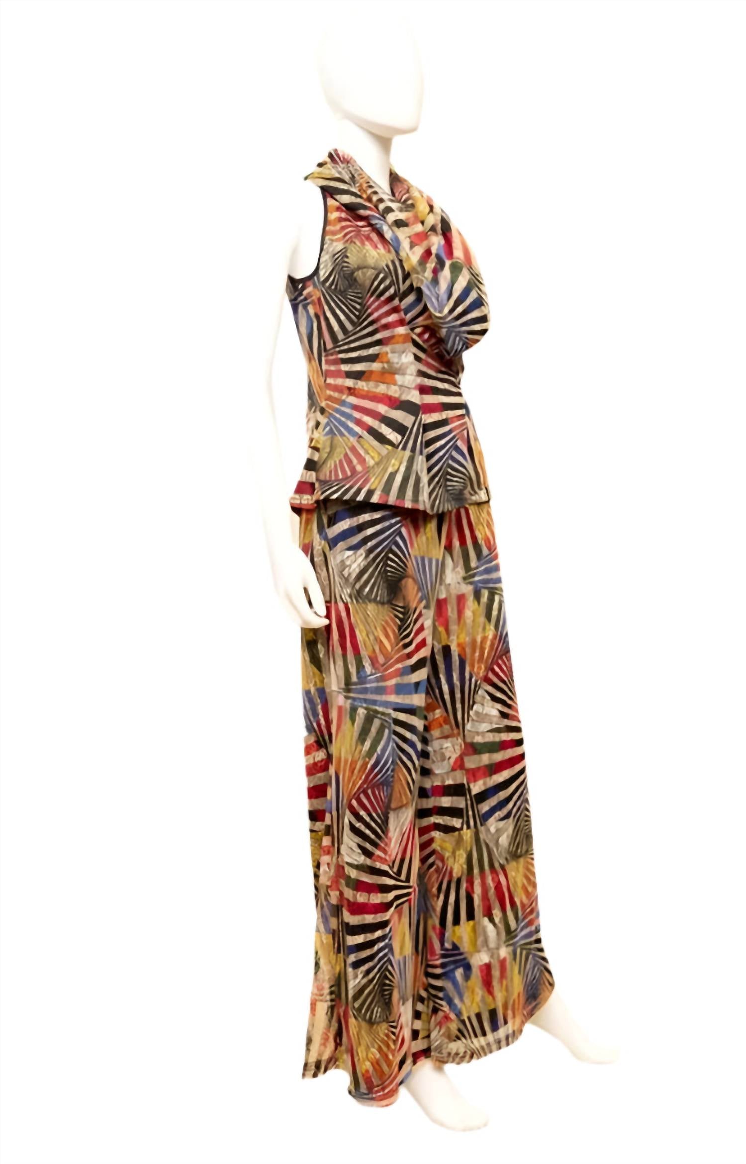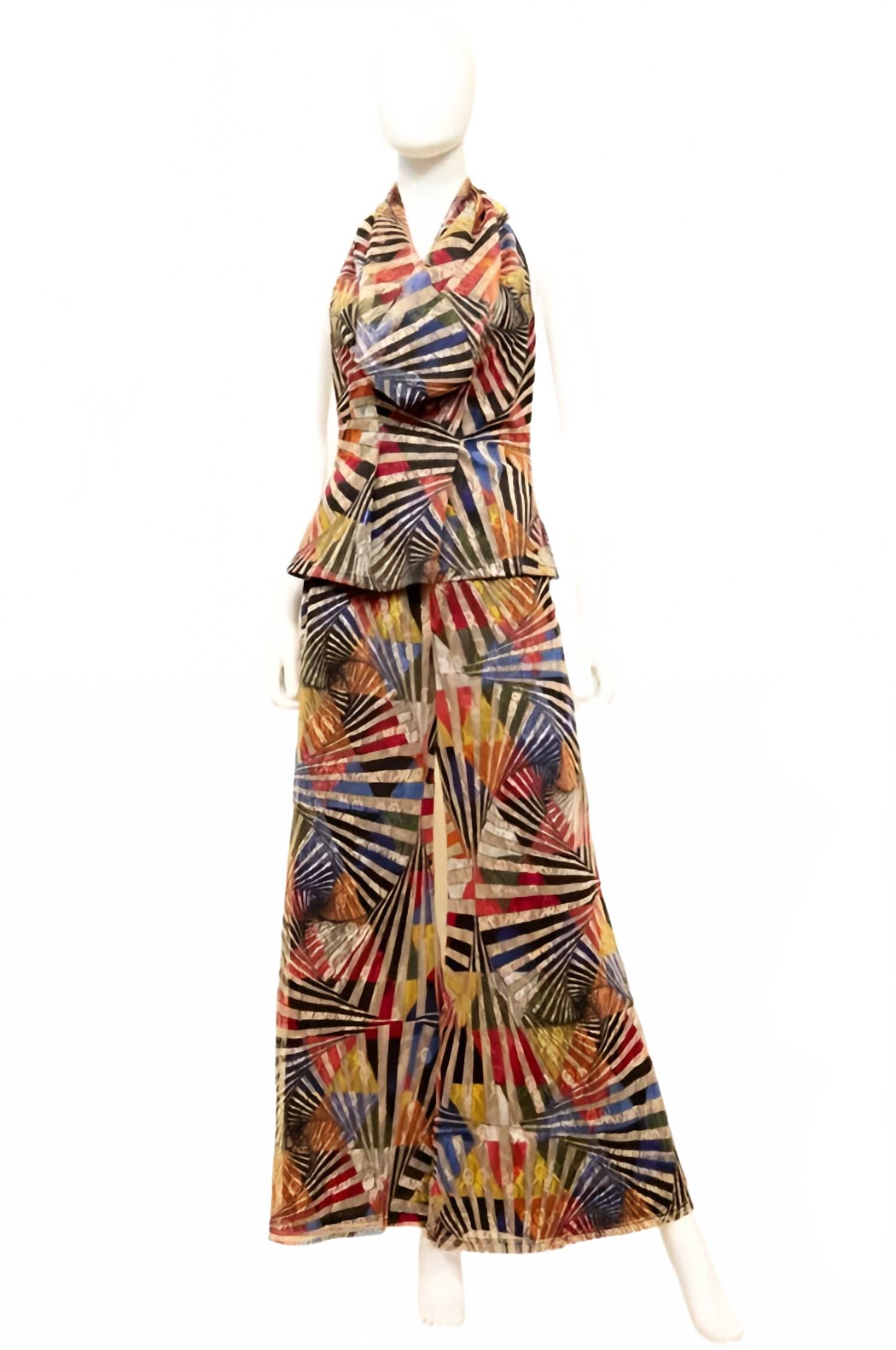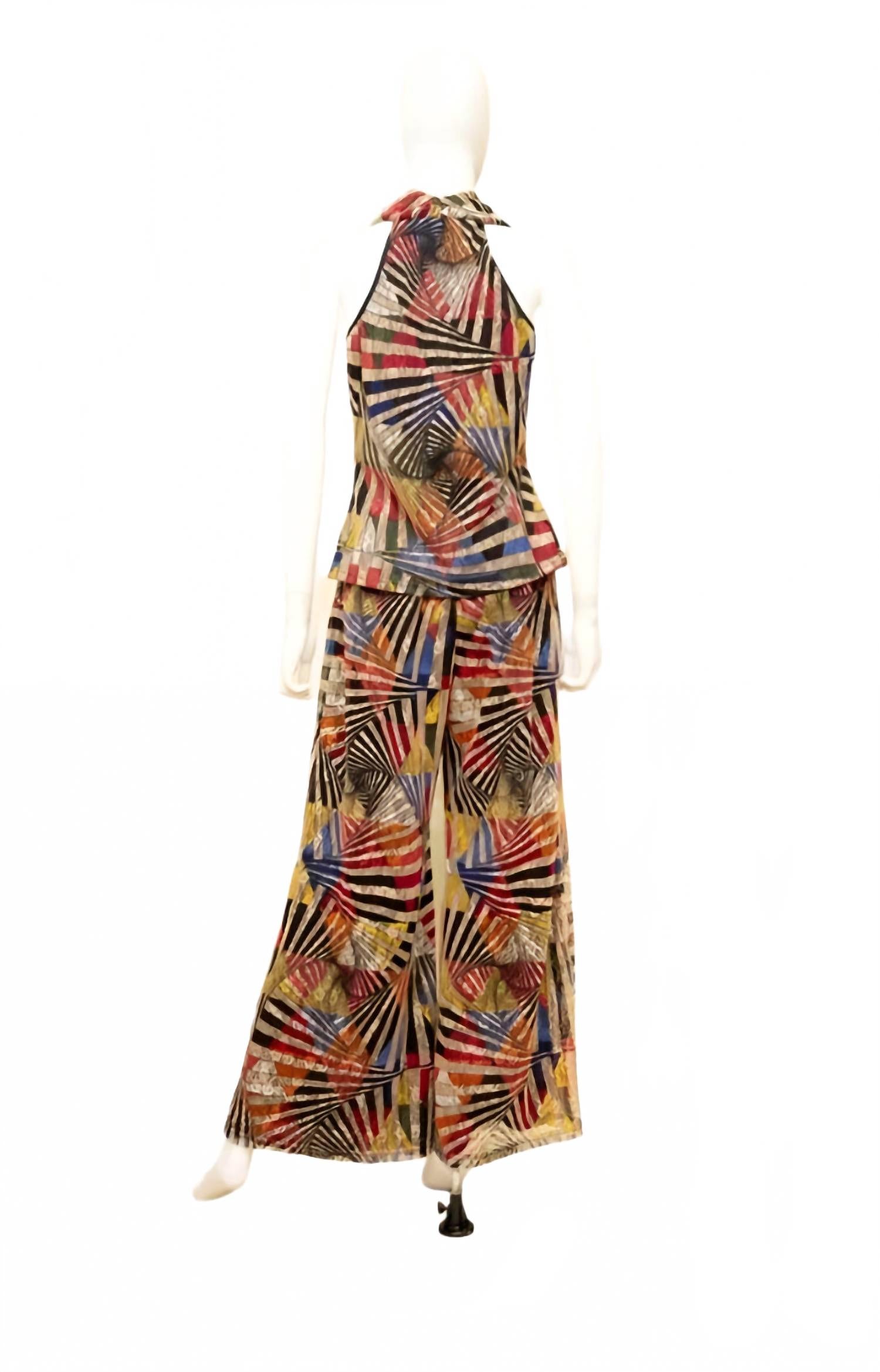 Сочетайте его с любимыми джинсами и шлепанцами для следующей девичьей вечеринки. Представляем топ без рукавов от Samuel Dong - эффектную модель с ярким геометрическим принтом Gold Multi, воплощающую максималистский тренд. Этот топ с шикарным воротником-хомут идеально подойдет для любого вечернего мероприятия. Элегантный и стильный, он идеально подходит для летних мероприятий. Дополните образ подходящими брюками F22012B, чтобы создать гармоничный образ.