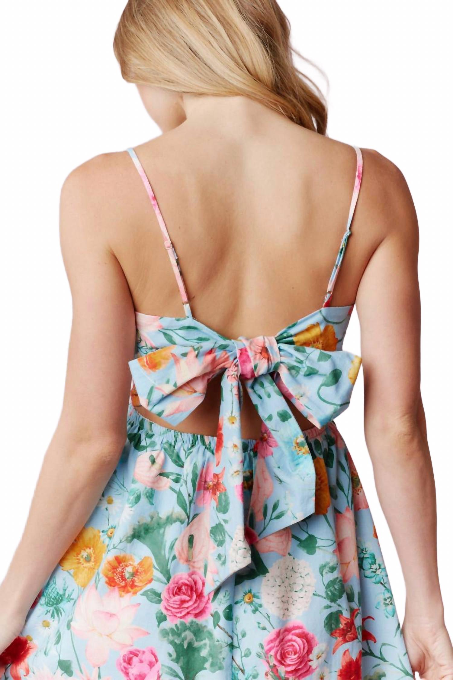 Представляем платье Blossom Back Bow от Peach Love - восхитительное дополнение к вашему летнему гардеробу. Это мини-платье без рукавов выполнено из 100% хлопка и дополнено тонкими бретельками с завязкой для удобной посадки. Платье украшено ярким синим цветочным принтом, очаровательным бантом на спине и игривым вырезом. Можно стирать в стиральной машине и сушить в стиральной машине. На модели размер S.