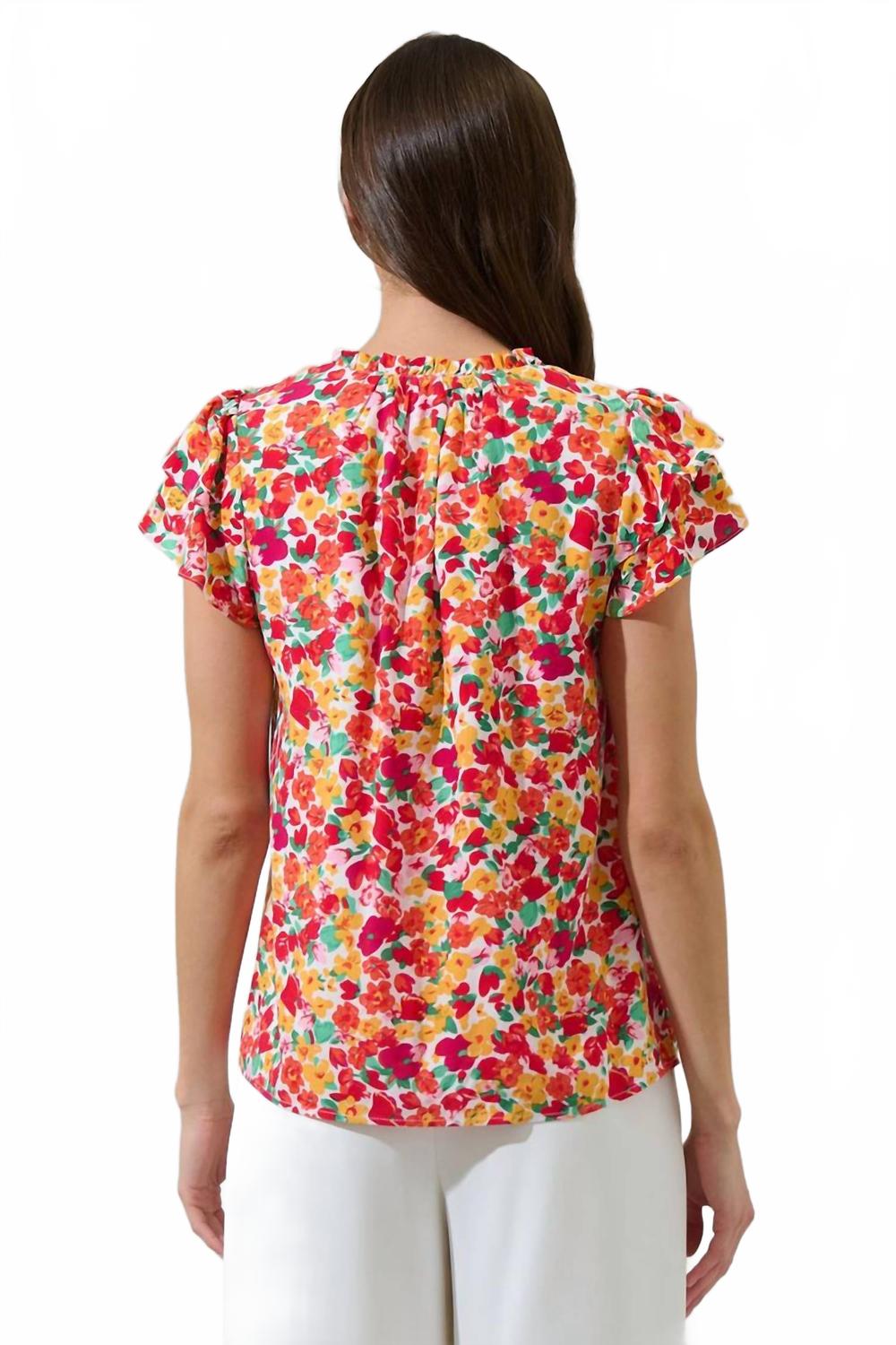 Универсальная блузка, которая подойдет как для работы, так и для ужина! Создайте непринужденный и элегантный образ в этой очаровательной блузке Joly Floral Hessa Ruffle. Этот милый цветочный принт украшает блузку, а оборки расположены на коротких рукавах и вокруг выреза. Блузка имеет свободный крой, поэтому ее можно носить с подходящими брюками и обувью на каблуках или балетках. - Цветочный - Рюш - Блузка - На подкладке - Цвет - Многоцветный оранжевый