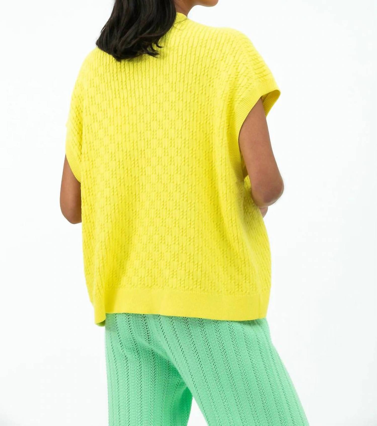 Наденьте этот жилет поверх полностью черного наряда, чтобы создать безупречный образ. Дополните свой гардероб жилетом на пуговицах MR MITTENS яркого желтого цвета, который идеально подходит для создания универсальных образов. Этот жилет без рукавов с фактурным узором «косички» и свободным кроем идеально подходит как для офиса, так и для отдыха. Состав: 100% хлопок. Застежка: пуговицы. Круглый вырез горловины гармонично сочетает комфорт и элегантность.