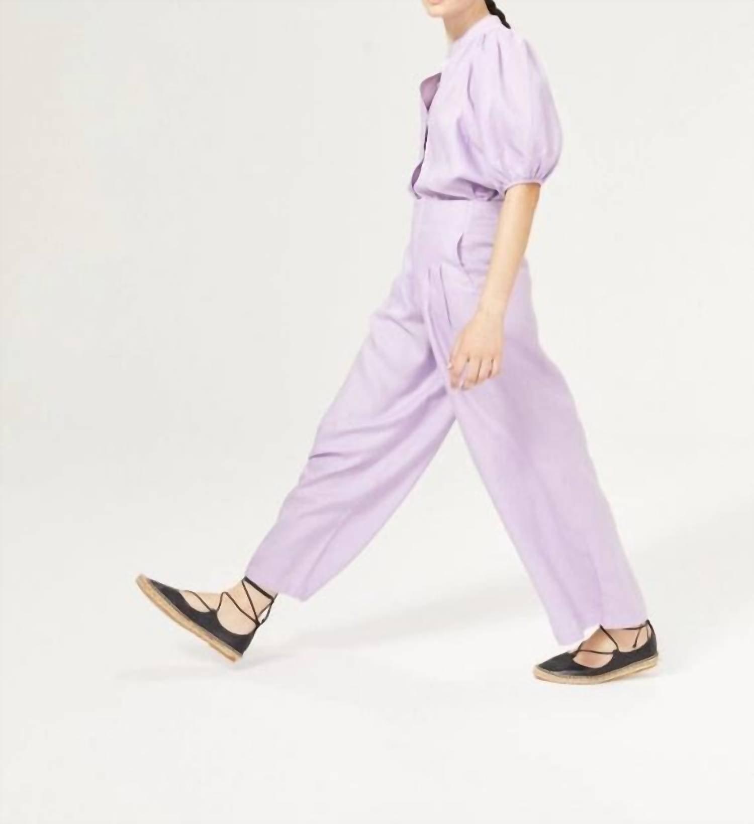 Ощутите непринужденный стиль с льняными брюками-кюлотами Lanhtropy, представленными в привлекательном ярко-сиреневом оттенке. Эти брюки-кюлоты отличаются высокой посадкой и широкими штанинами, а боковые карманы обеспечивают дополнительную практичность. Изготовленные из 100% органического льна, они обеспечивают комфорт и изысканный вид, дополненный складками и двойным поясом. Застежка: крючок и молния спереди. Уход: машинная стирка и сушка на веревке.