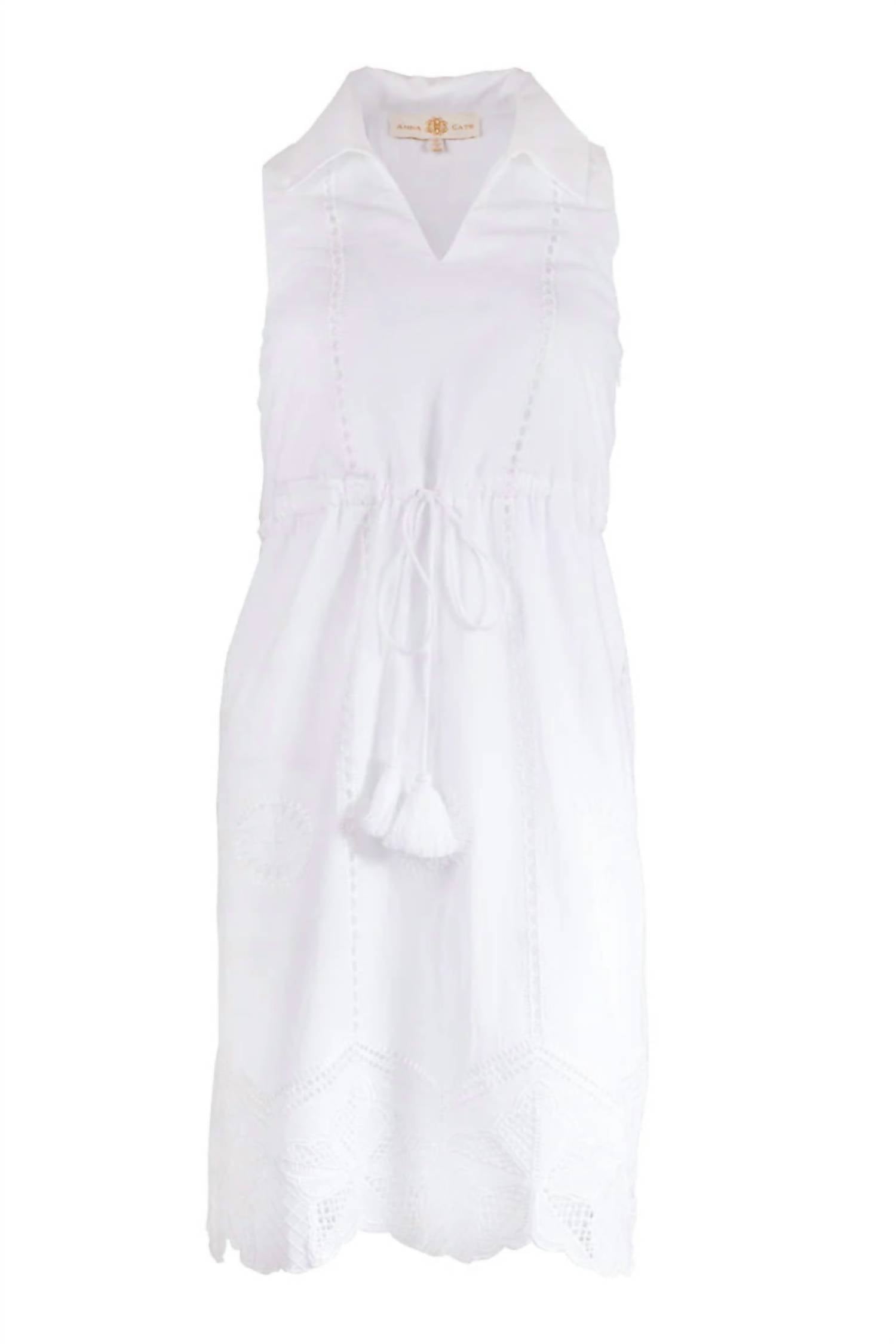 Идеальное мини-платье для теплых месяцев. Откройте для себя платье Heidi от Anna Cate - шикарный образ без рукавов с текстурированным белым люверсом. Это мини-платье А-силуэта с классическим V-образным вырезом, дополнительным поясом на талии и карманами для дополнительной функциональности. Благодаря уникальным люверсам, оно легко перейдет от повседневного к изысканному образу. Инструкции по уходу за этим классическим предметом гардероба отсутствуют.
