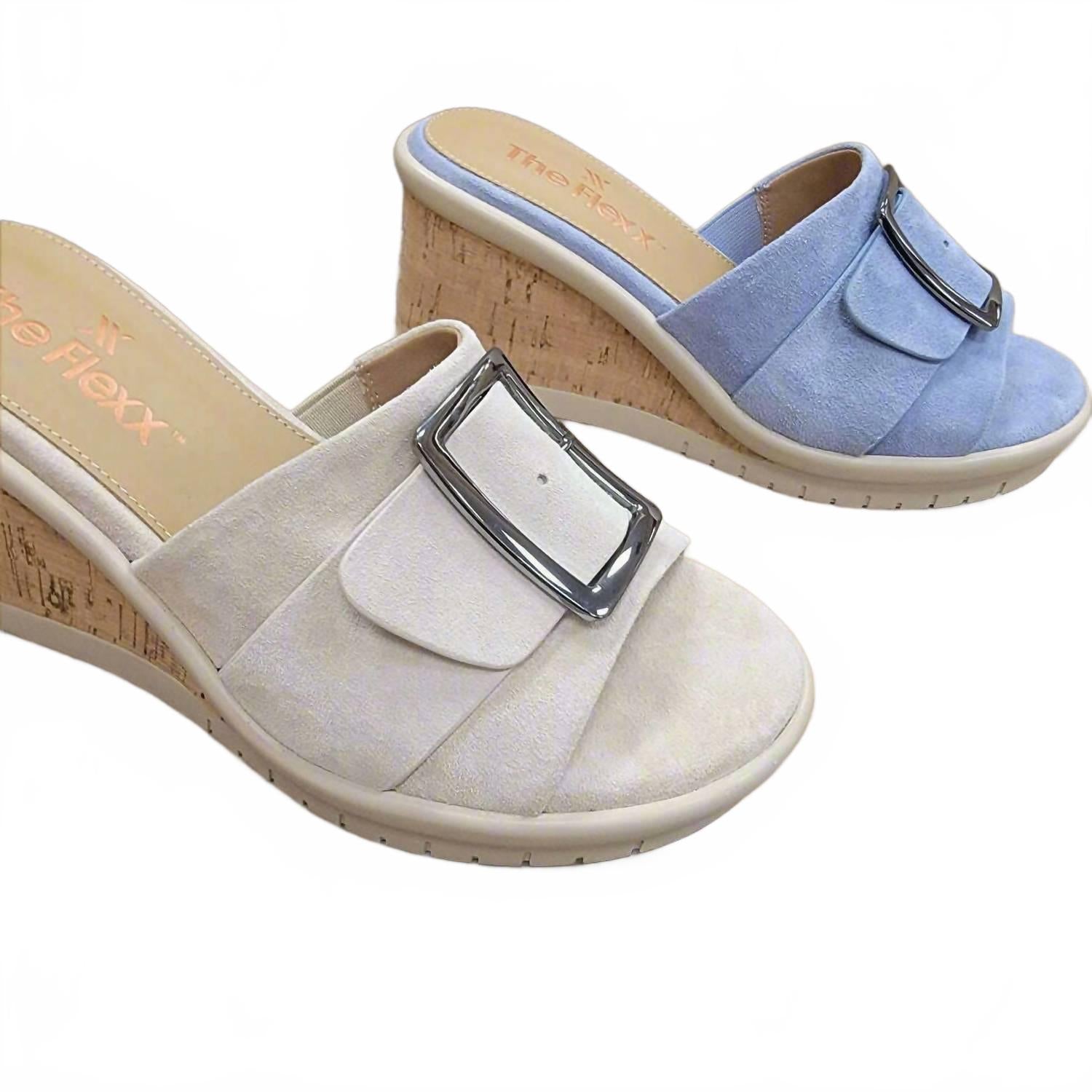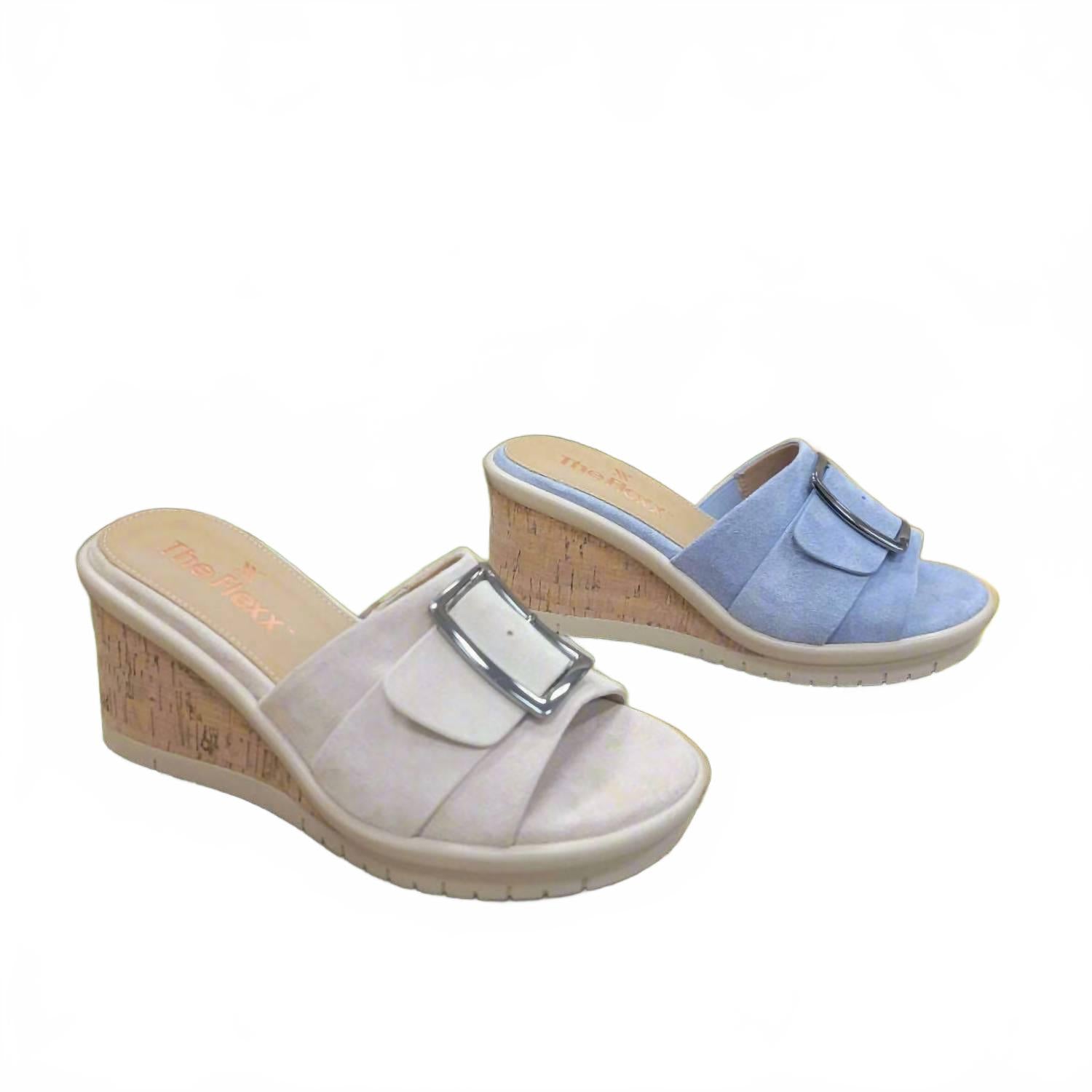 Классические, милые и удобные в повседневной носке. Нам очень нравятся эти сандалии. Окунитесь в летнюю элегантность с женскими сандалиями Mara от The FLEXX, идеально сочетающими комфорт и стиль бохо-шик. Верх сандалий выполнен из замши цвета «Облако», а открытый носок дополнен металлической пряжкой. Пробковый каблук-танкетка средней высоты (6,5-7,5 см) идеально подходит для отпуска. Эти сандалии с кожаной стелькой сочетают в себе стиль и комфорт.