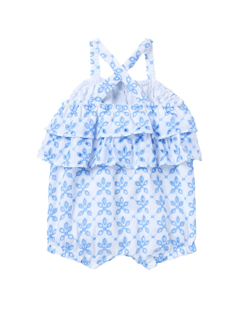 • Детали дизайна - всегда говорите «да» цветочным ажурным узорам по всей длине. Этот комбинезон из чистого хлопка с оборками и перекрещивающимися бретелями идеально подходит для солнечных дней. Этот комбинезон из чистого хлопка с оборками и перекрещивающимися бретелями идеально подходит для солнечных дней.