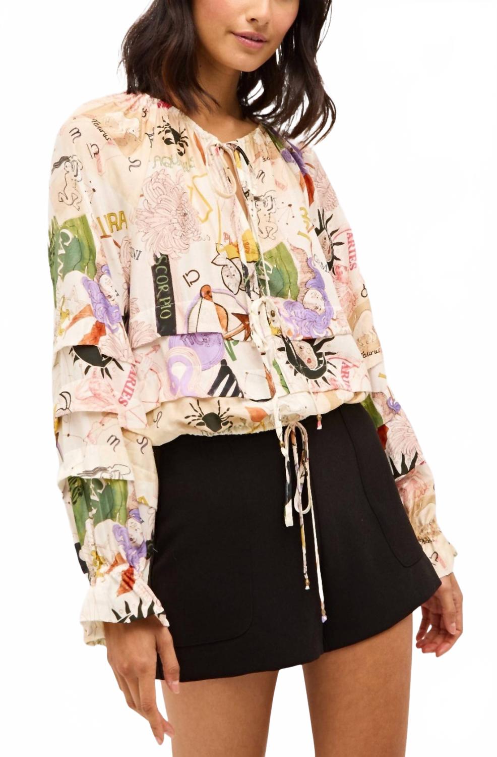 Блузка Umi от Marie Oliver - эффектная вещь, идеально подходящая для вашего весеннего гардероба. Эта графичная блузка выполнена в яркой расцветке «Зодиак» и имеет круглый вырез горловины и длинные рукава, что создает шикарный образ. Созданная в соответствии с максималистским трендом, она оснащена застежкой-липучкой для удобства ношения. Блузка Umi обеспечит вам стильный и комфортный образ, будь то отдых на курорте или знакомство с новым городом.