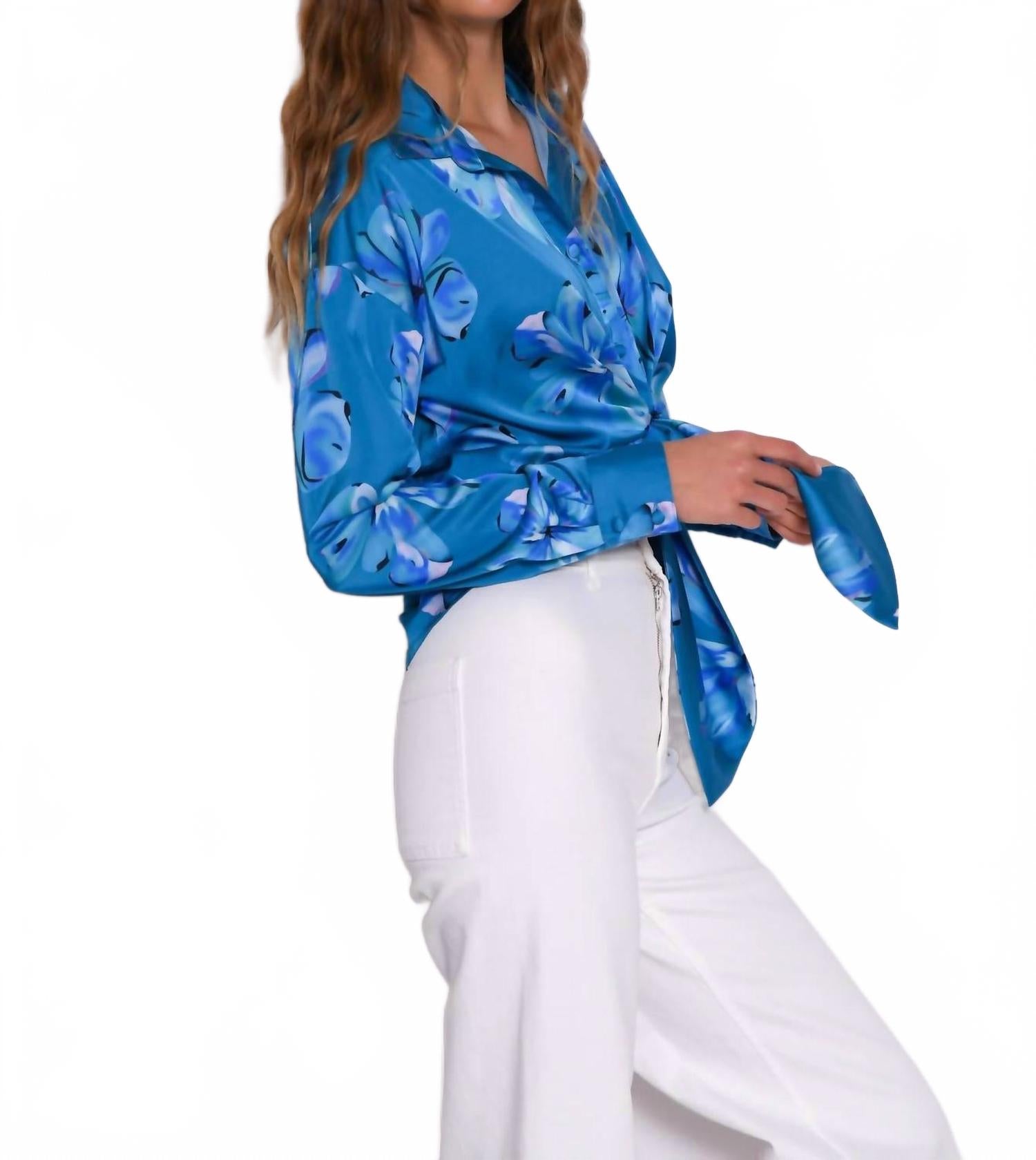 Элегантный карамельно-коричневый цвет станет идеальным дополнением к вашему гардеробу на любой случай. Блузка с длинными рукавами, острым воротником, застежкой на обтянутые пуговицы спереди и регулируемым завязкой для создания разнообразных образов. Изготовлена из роскошного атласа. Длина спереди 22 дюйма (52 см), сзади 25,5 дюйма (64 см) от точки плеча, что создает уникальный силуэт. Только химчистка.