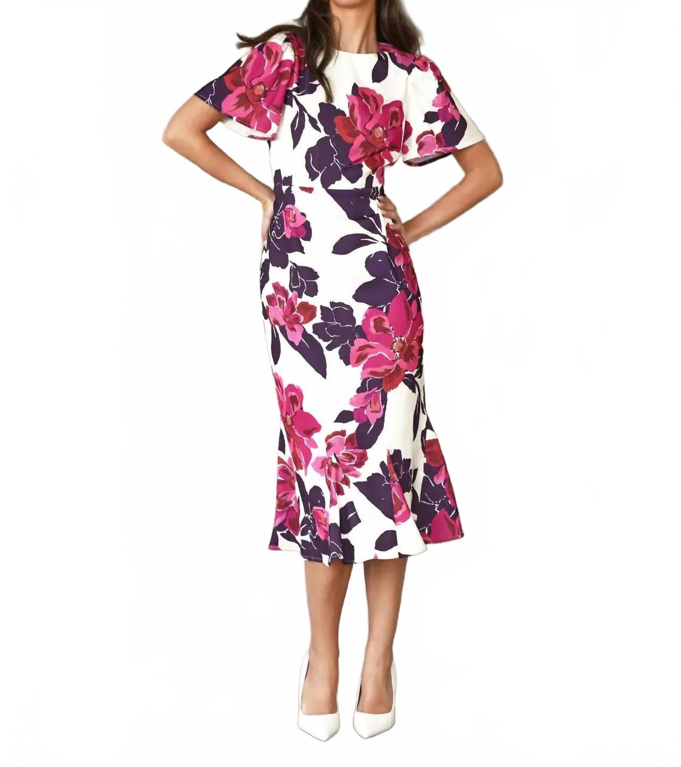 Платье идеальной длины существует. Представляем платье-миди Aubria от Adelyn Rae - потрясающее платье облегающего кроя с расклешенной юбкой, идеально подходящее для любого весеннего случая. Это платье средней длины с короткими рукавами-крылышками выполнено из приятного полиэстера. Яркий розово-фиолетовый цветочный узор дополняет скромный круглый вырез, создавая элегантный образ. Застежка: молния. Уход: ручная стирка и сушка в разложенном виде.