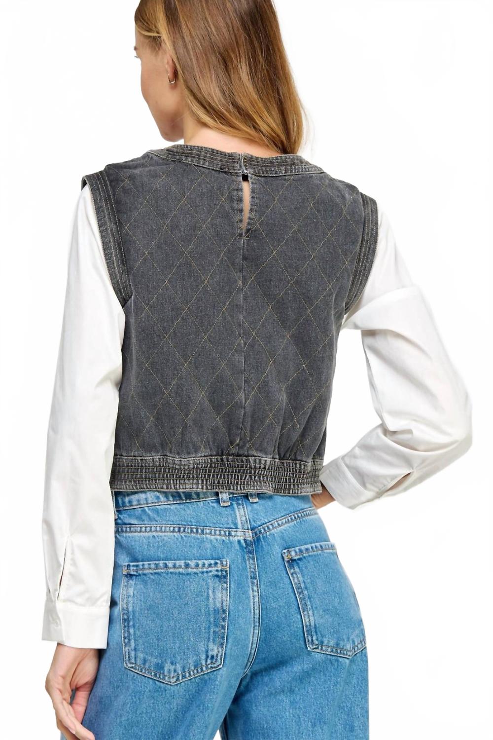 Стеганый джинсовый топ от Strut & Bolt идеально дополнит ваш осенний уличный гардероб благодаря современному дениму нежно-белого оттенка. Эта женская блузка с длинными рукавами и классическим круглым вырезом обеспечит стильную посадку и комфорт во время путешествий. Изготовленная из однотонной ткани с рисунком, она идеально подходит для многослойного ношения и отлично согревает.