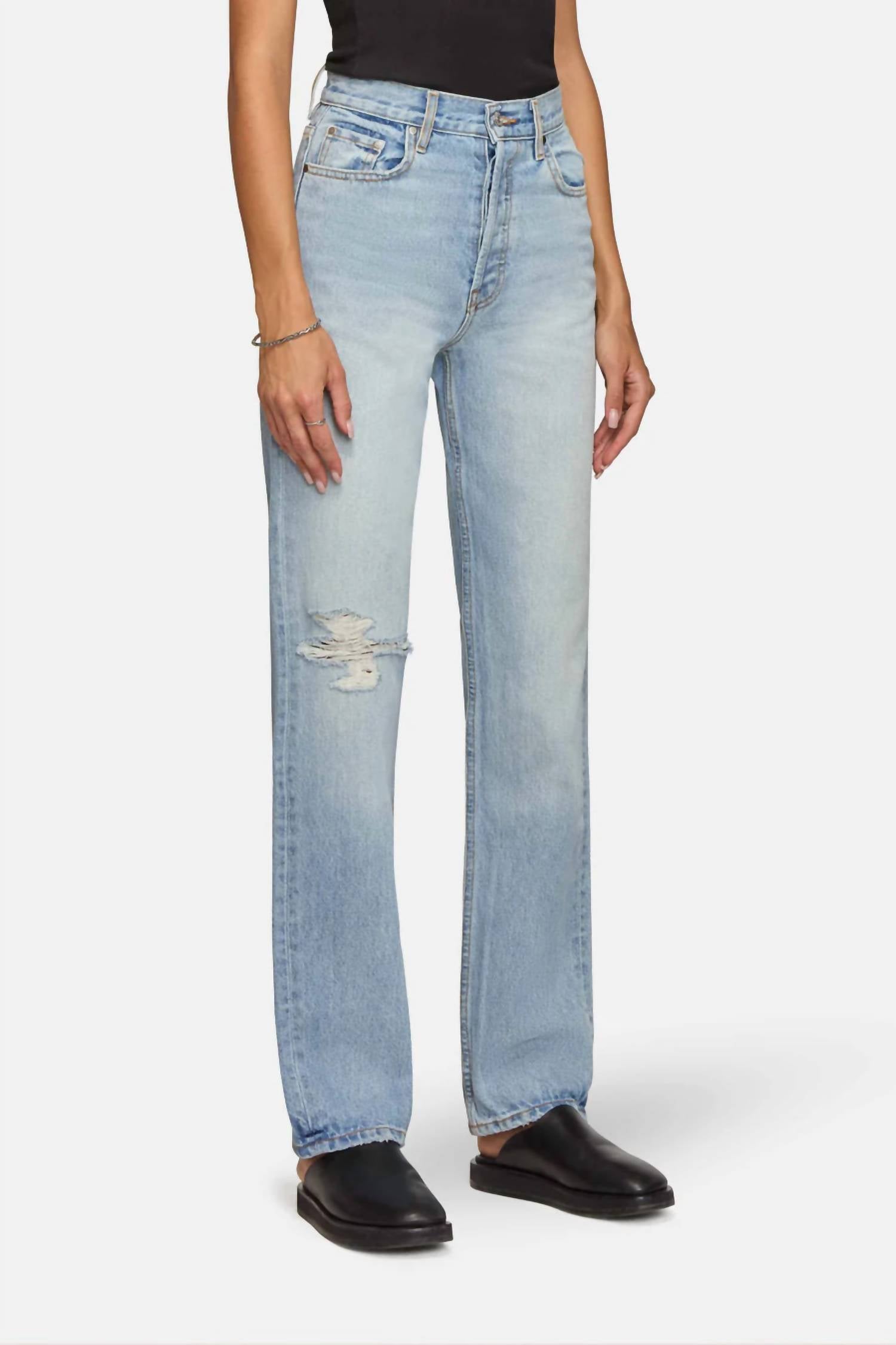 Эти джинсы из 100% высококачественного жесткого хлопка с высокой посадкой и классическим прямым силуэтом выгодно подчеркивают фигуру. Универсальный крой с пятью карманами и застежкой-молнией идеально подходят для любого повседневного образа. Уход за ними очень прост: рекомендуется машинная стирка, что гарантирует их практичность и стильный вид.