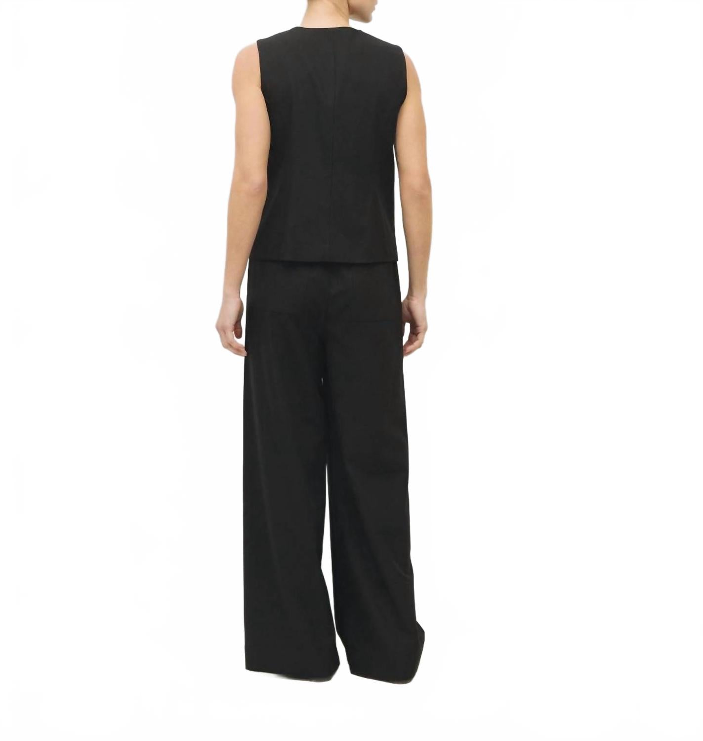 Изысканный выбор для современной женщины. Черные брюки с высокой талией имеют свободный крой и широкие брючины, подчеркнутые эластичной резинкой на талии для максимального комфорта и удобства. Практичность сочетается со стилем благодаря изящным завязкам спереди, боковым карманам и накладным карманам сзади, выполненным в однотонном узоре. Полностью на льняной подкладке, идеально подходят для осенних путешествий. Уход: машинная стирка.
