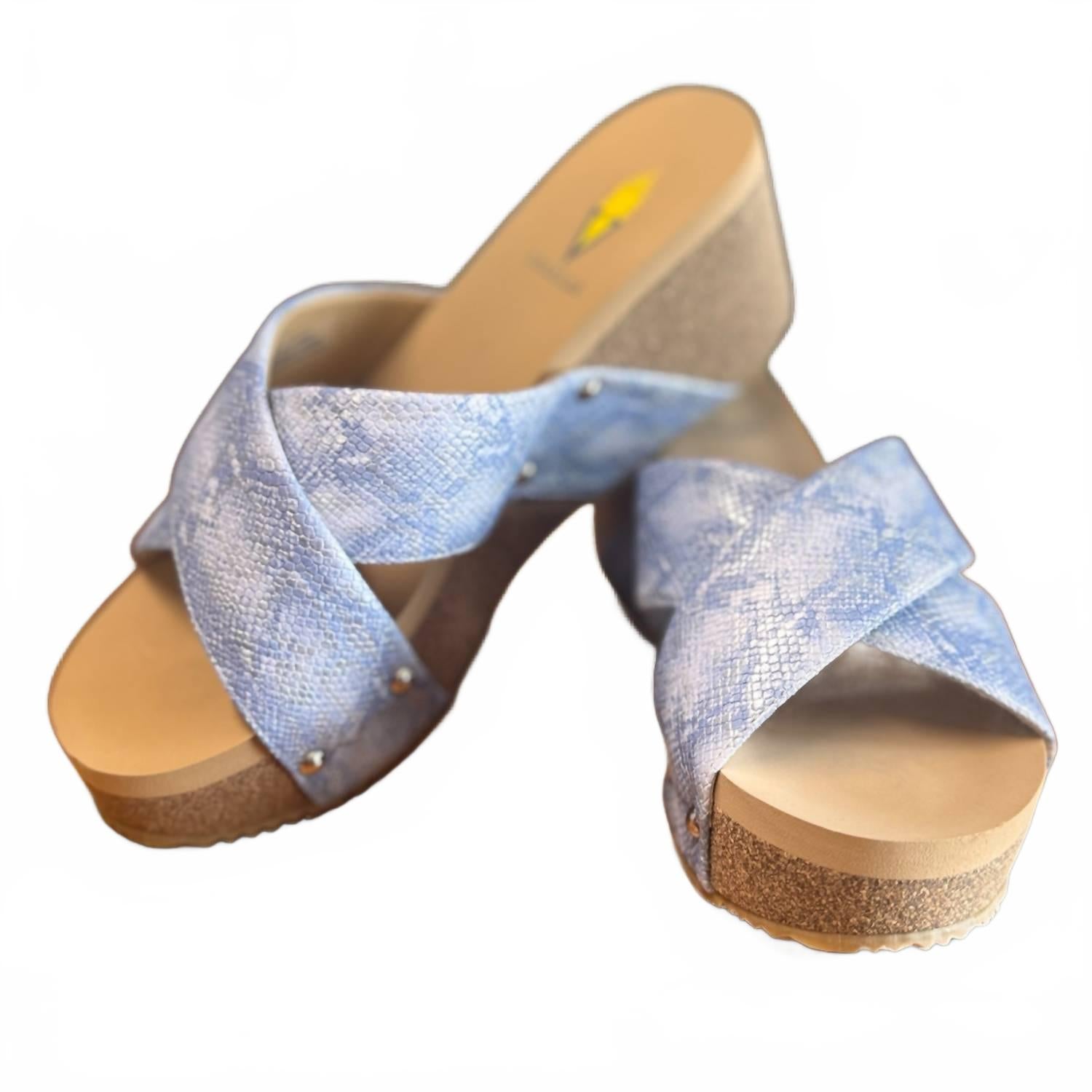 Стильные туфли идеально подойдут для весеннего настроения. Открытый носок и танкетка с пробковой подошвой высотой около 7 см. Верх выполнен из натуральной телячьей кожи или глянцевой искусственной крокодиловой кожи. Мягкая или искусственная подкладка и ультракомфортная стелька из ЭВА обеспечат комфорт. Резиновая подошва обеспечивает отличное сцепление.