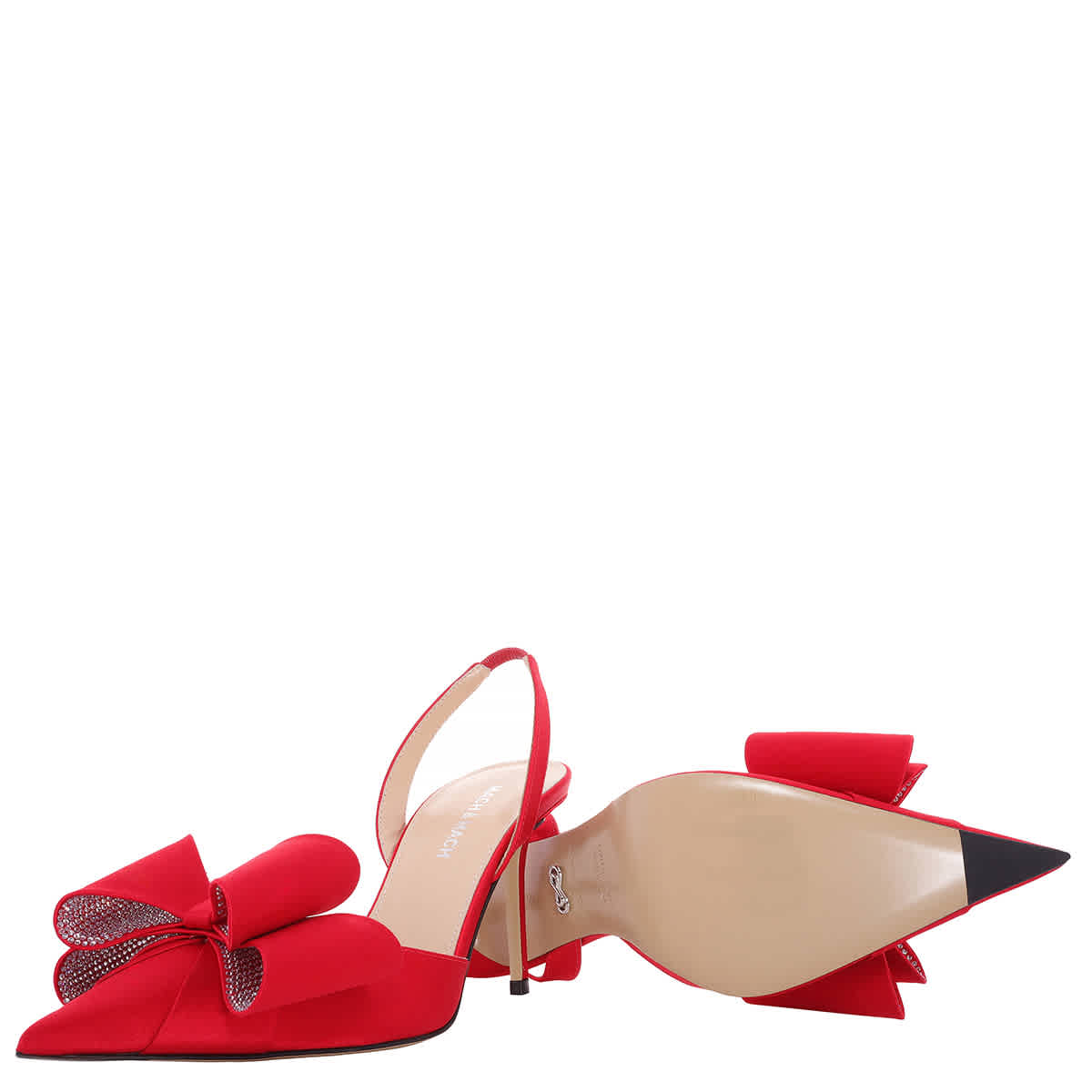 Женские туфли на каблуке Mach & Mach. Цвет: красный. Туфли-лодочки Mach Mach Le Cadeau с открытой пяткой. Туфли Le Cadeau с заостренным носком, элегантным ремешком и каблуком высотой 85 мм украшены сверкающим бантом с кристаллами. Удобная кожаная стелька и прочная кожаная подошва обеспечивают стильный вид и поддержку. Сделано в Италии.