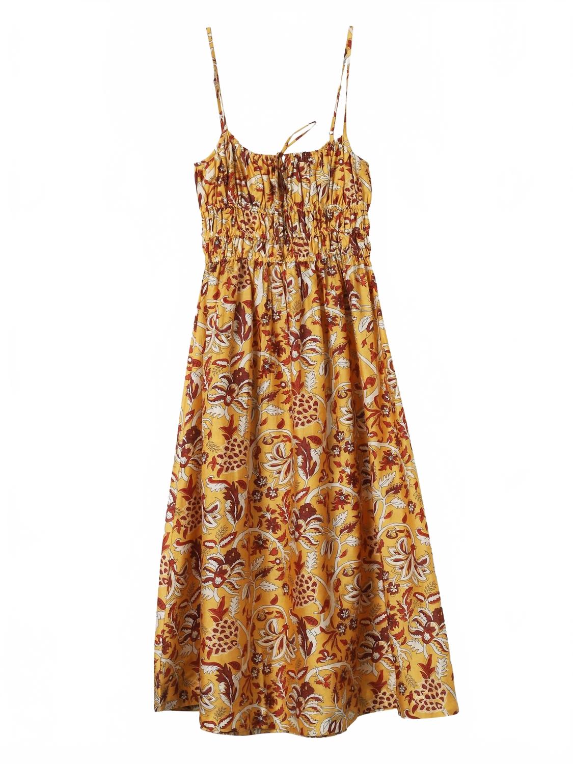 Платье идеальной длины существует. Встречайте платье миди Yolanda от Hannah Artwear - незаменимую вещь в стиле бохо-шик для вашего весеннего гардероба. Это женское платье с романтичным цветочным узором, лифом с рюшами и регулируемыми тонкими бретельками создает потрясающий А-силуэт в янтарных тонах. Платье изготовлено из дышащего хлопка и отличается удобством благодаря карманам и застежке-липучке. Уход: ручная стирка по мере необходимости.