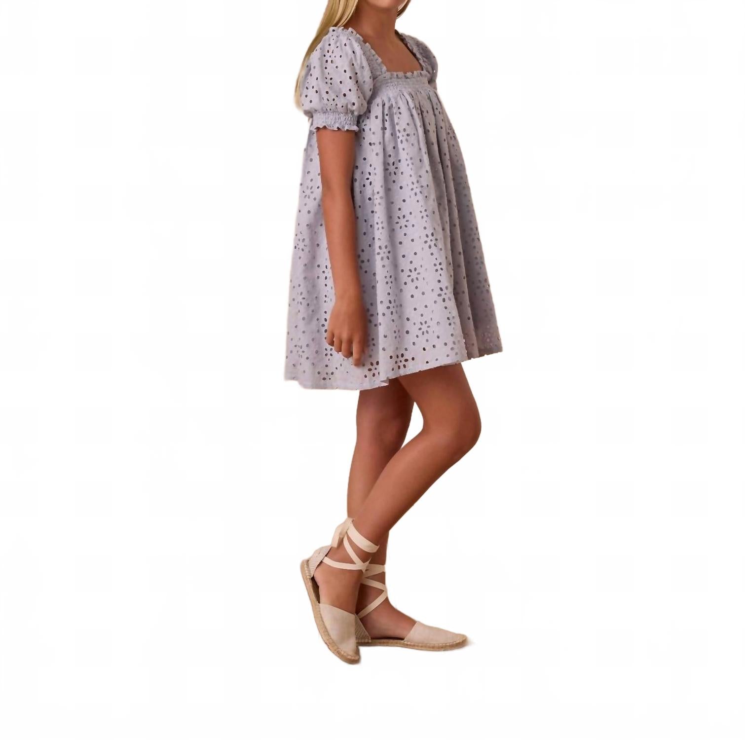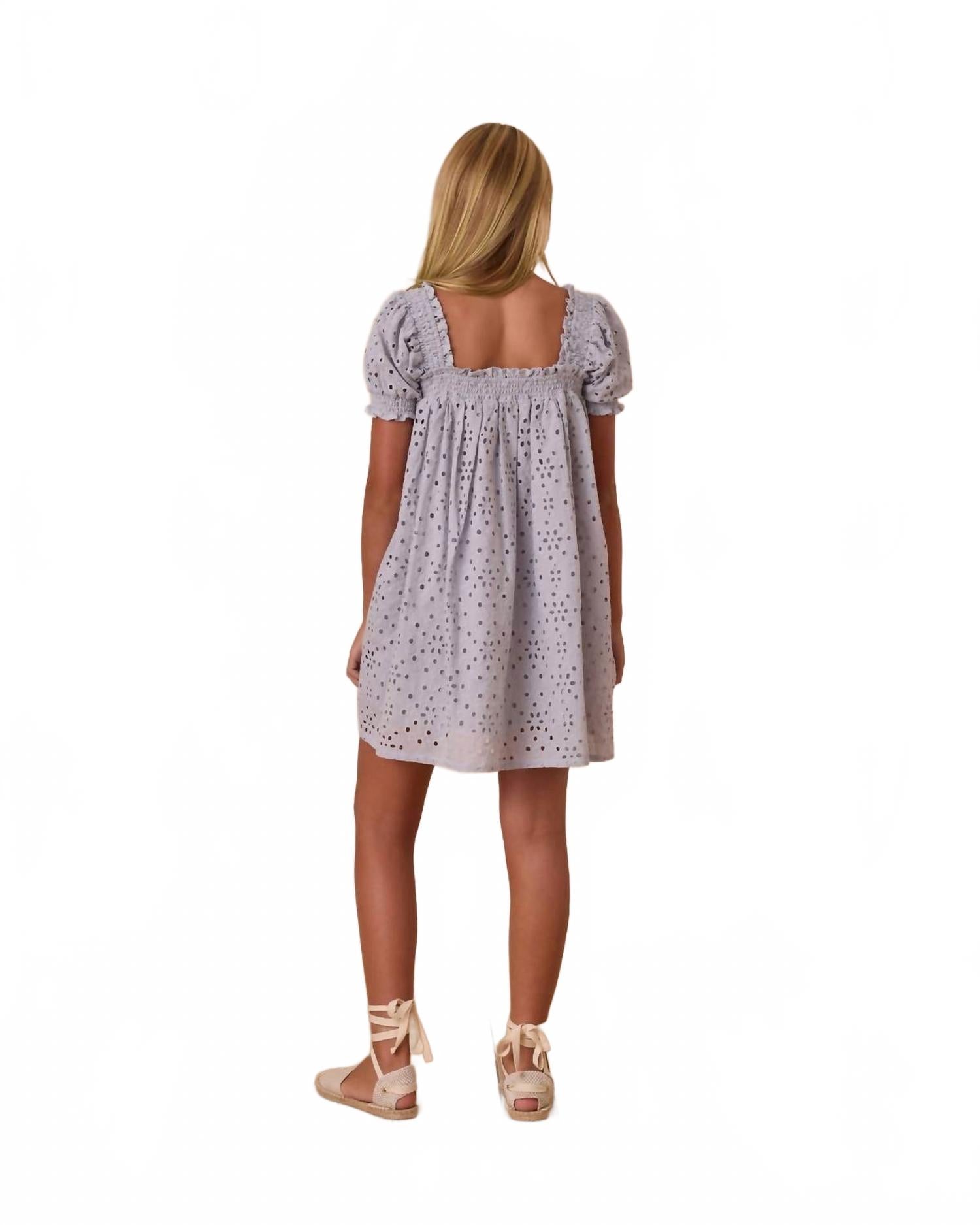 Представляем мини-платье Milan от Rylee + Cru, очаровательное дополнение к нашей коллекции в приятном светло-голубом оттенке. Это платье для девочек с силуэтом бэби-долл и ажурным узором идеально подходит для повседневных весенних прогулок или отпуска. Изготовленное из 100% хлопка, оно обеспечивает комфорт и воздухопроницаемость. Рекомендации по уходу: ручная стирка в холодной воде и сушка в разложенном виде на горизонтальной поверхности.