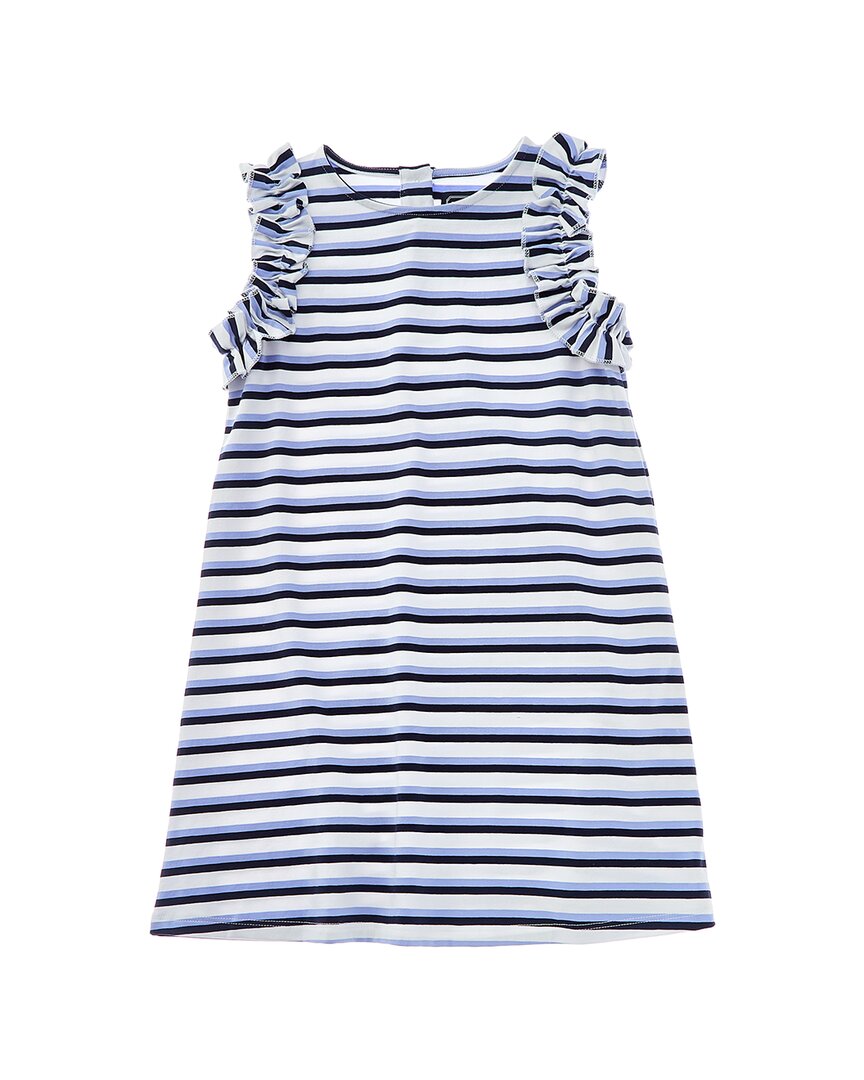 Представляем платье Leah от Duffield Lane - стильное дополнение к гардеробу вашей малышки. Это платье темно-синего и белого цветов с очаровательной отделкой рюшами и застежкой на пуговицы создает очаровательный и женственный образ. Платье изготовлено из 95% хлопка и 5% спандекса, оно не только удобное, но и легко поддается машинной стирке. Платье Leah от Duffield Lane, импортированное из других стран, идеально подходит для любого случая.