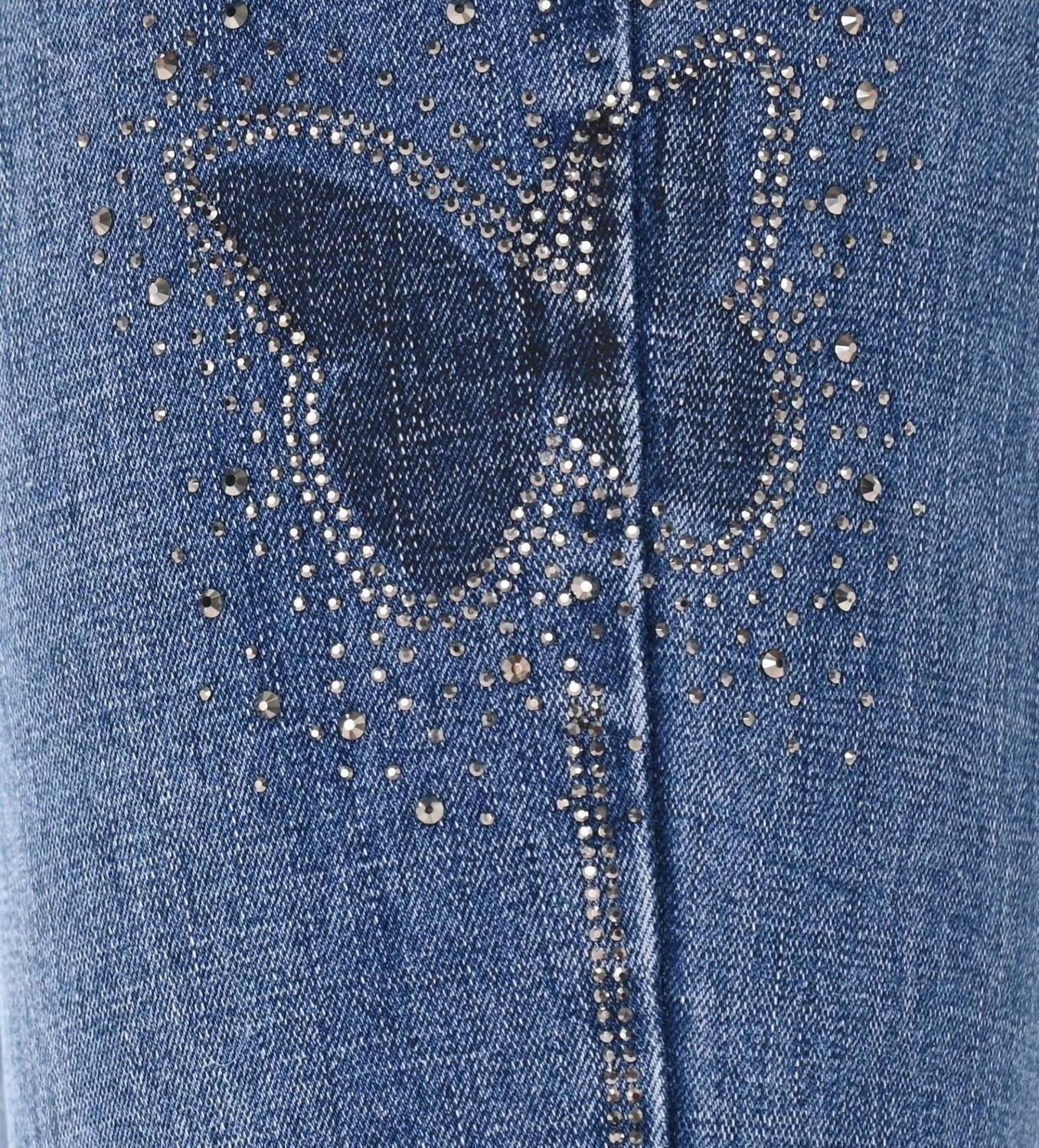 Узкие джинсы, которые одновременно подчеркивают фигуру и удобны. Нам нравится эта модель, потому что она отлично сочетается как с ботинками, так и без них! Эти джинсы Frank Lyman из денима синего цвета с элегантным силуэтом бабочки сбоку, украшенным сверкающими стразами, добавят нотку причудливого очарования любому образу. Это уникальное сочетание классического денима и нежных мотивов бабочек излучает изысканность и игривую элегантность.