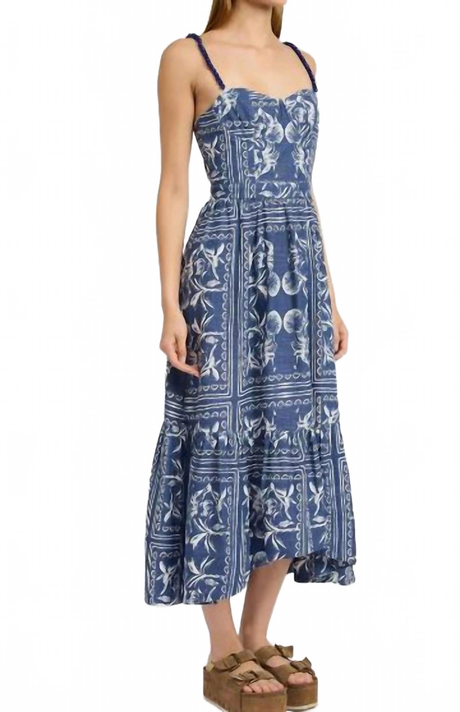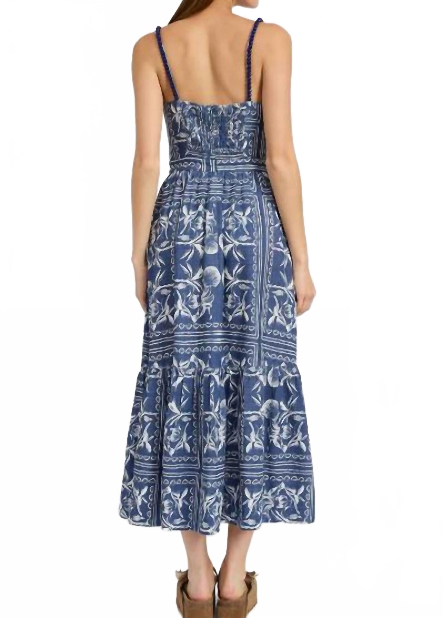 Платье макси, которое так же мило, как и удобно. Представляем платье макси Oaklynn Navy от Jacquie The Label - идеальное сочетание стиля бохо-шик и комфорта. Это платье с узором, тонкими бретельками и А-образным силуэтом выполнено из роскошной вискозной ткани (80% вискозы и 20% льна). Водолазка и застежка на молнию идеально подходят для весенних каникул. Для удобства ухода достаточно ручной стирки. Подкладка из 100% хлопка дарит комфорт.