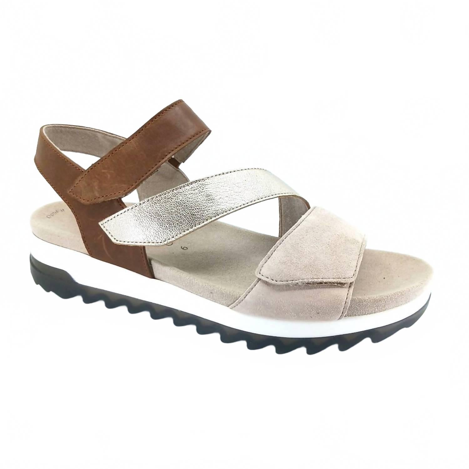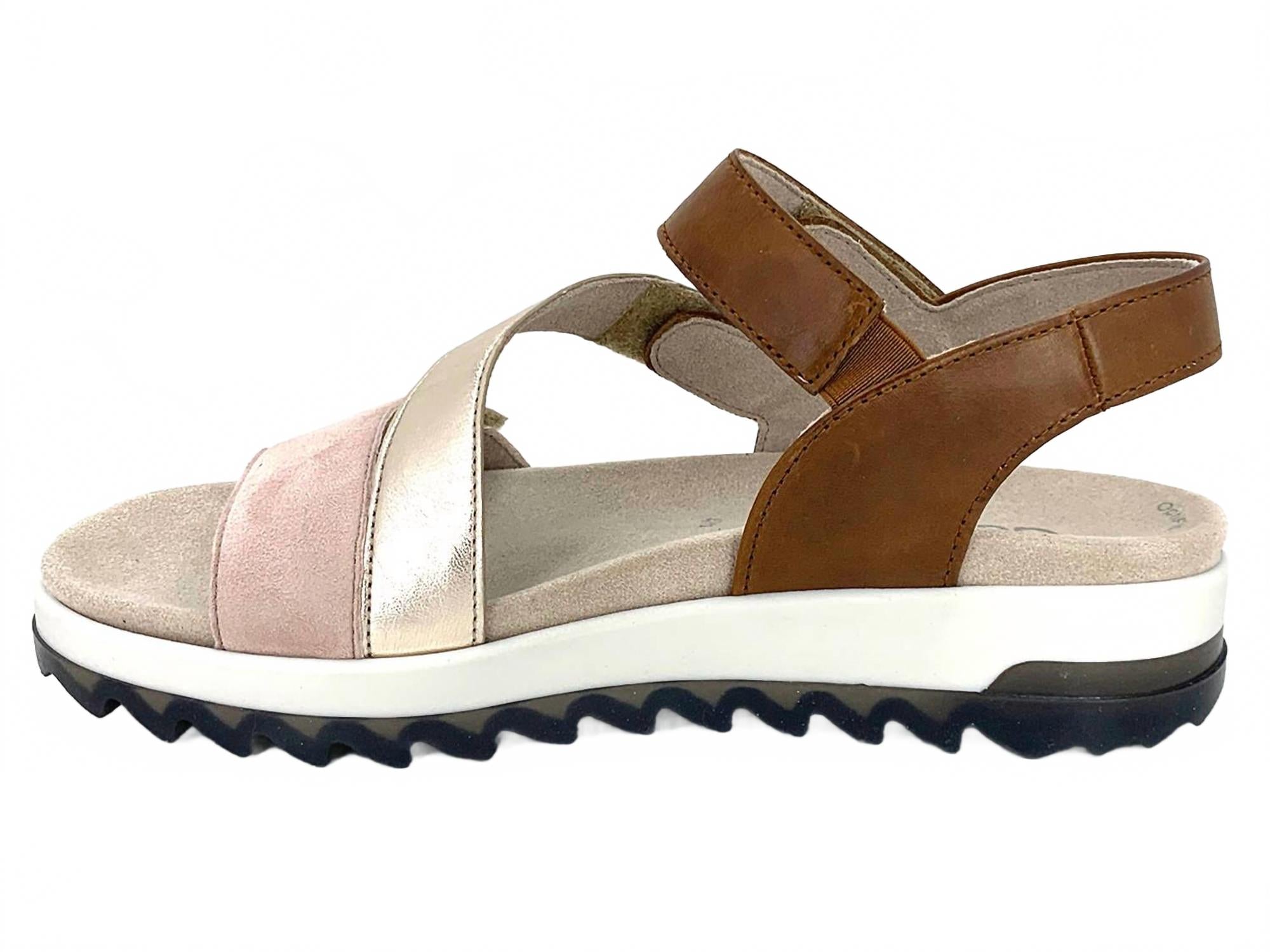 Верх сандалий выполнен из мягкой кожи и замши, а ремешки на липучках обеспечивают индивидуальную посадку для удобства ношения. Внутренняя часть сандалий отделана кожей и имеет мягкую стельку для комфортной поддержки в течение всего дня. Гибкая синтетическая подошва обеспечивает прочность, дополняется каблуком высотой 1,5 дюйма и платформой высотой 18 мм.