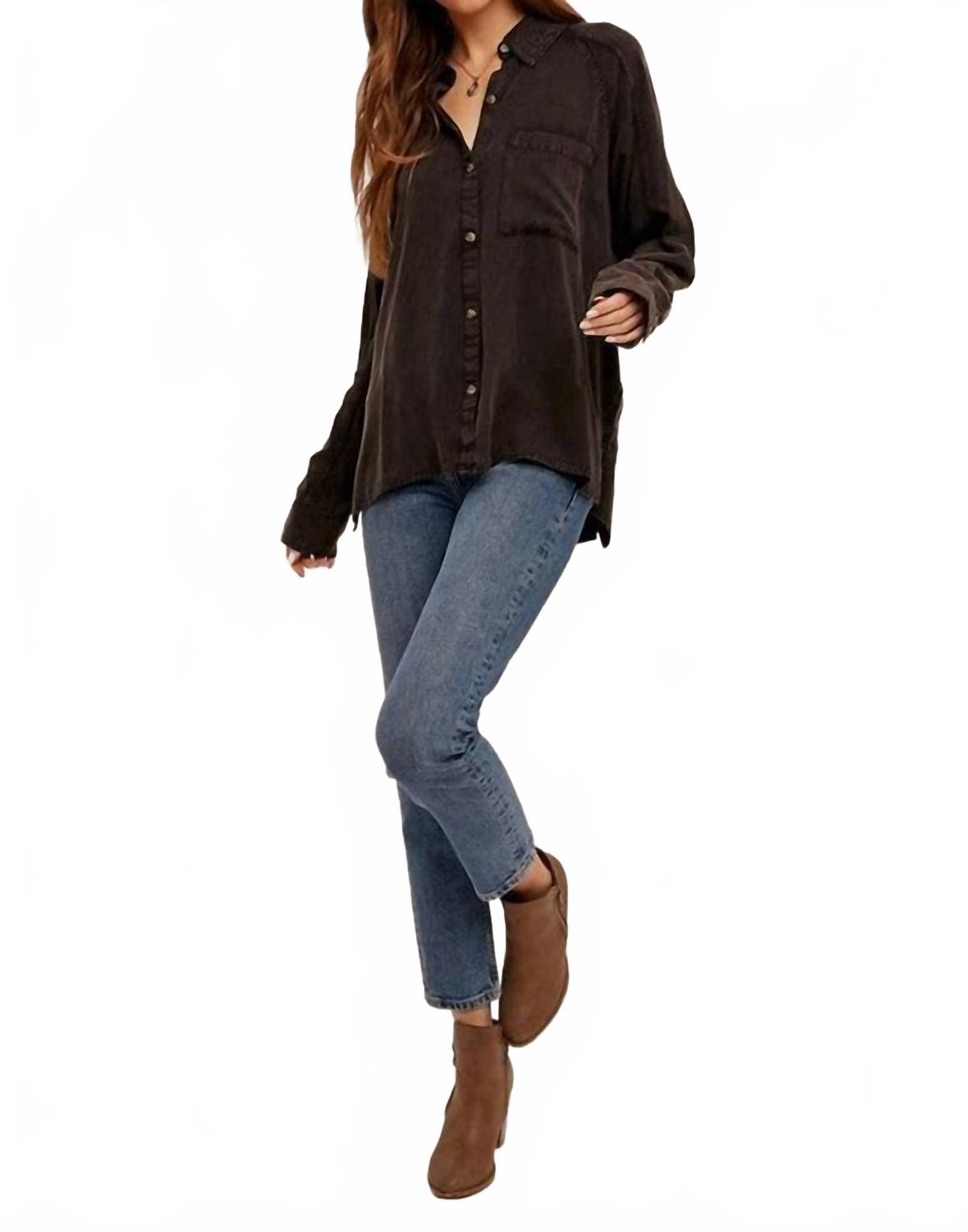 Дополните свой дорожный гардероб рубашкой Mineral Washed Button Down от Hem & Thread - стильным дополнением к гардеробу в однотонном черном цвете. Эта женская рубашка на пуговицах с классическим воротником и длинными рукавами гармонично сочетает в себе уличный стиль и функциональность. Застежка: пуговицы. Эта модель идеально подходит для осенних поездок и добавит изысканности любому образу.