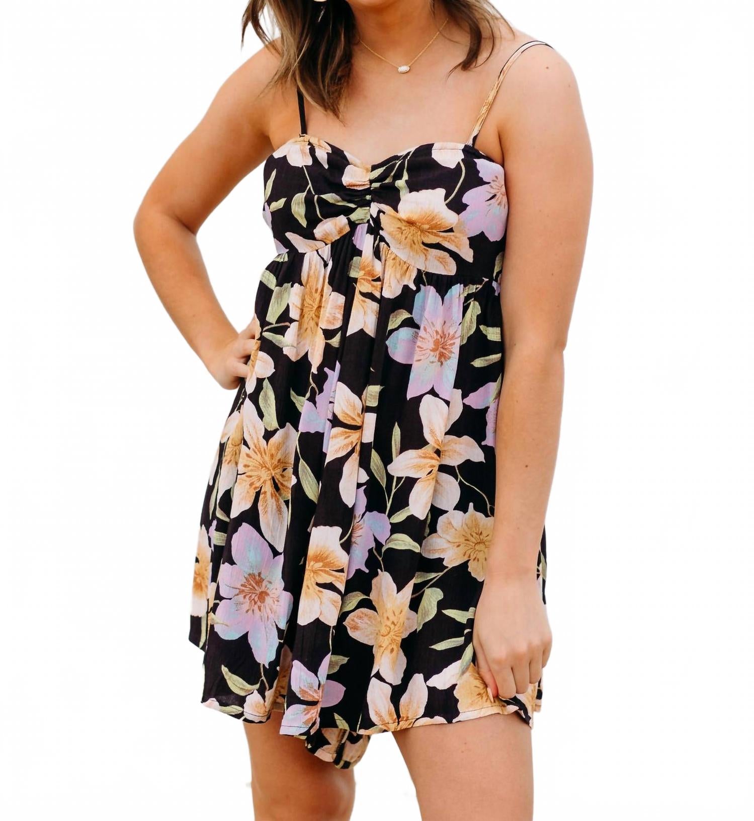 Надевайте и вперед! Встретьте лето с комбинезоном Star Glow от Billabong - идеальным выбором для отпуска. Этот комбинезон из легкой 100% вискозы с очаровательной жатой текстурой имеет облегающий лиф с V-образным вырезом, который переходит в свободные шорты с длиной внутреннего шва 10,5 см. Цветочный узор черного цвета дополняет металлическую пластину, добавляя изюминку. Отсутствие карманов делает его идеальным для знойных летних дней.