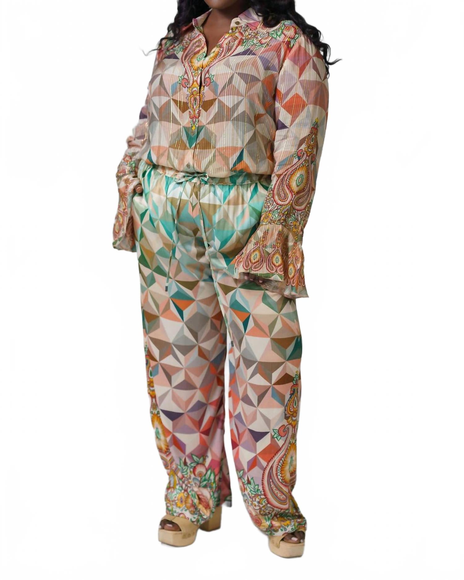 Представляем брюки Klara Wide Leg Pants в цвете Multi Abstract от -bl^nk-, сочетающие в себе экстравагантность и практичность. Эти брюки широкого кроя с эластичной талией и удобными боковыми карманами обеспечивают максимальный комфорт. Изготовленные из 100% вискозы, они обеспечивают свободную высокую посадку и идеально подходят для уличной одежды или музыкальных фестивалей. Инструкции по уходу: ручная стирка и сушка на веревке.