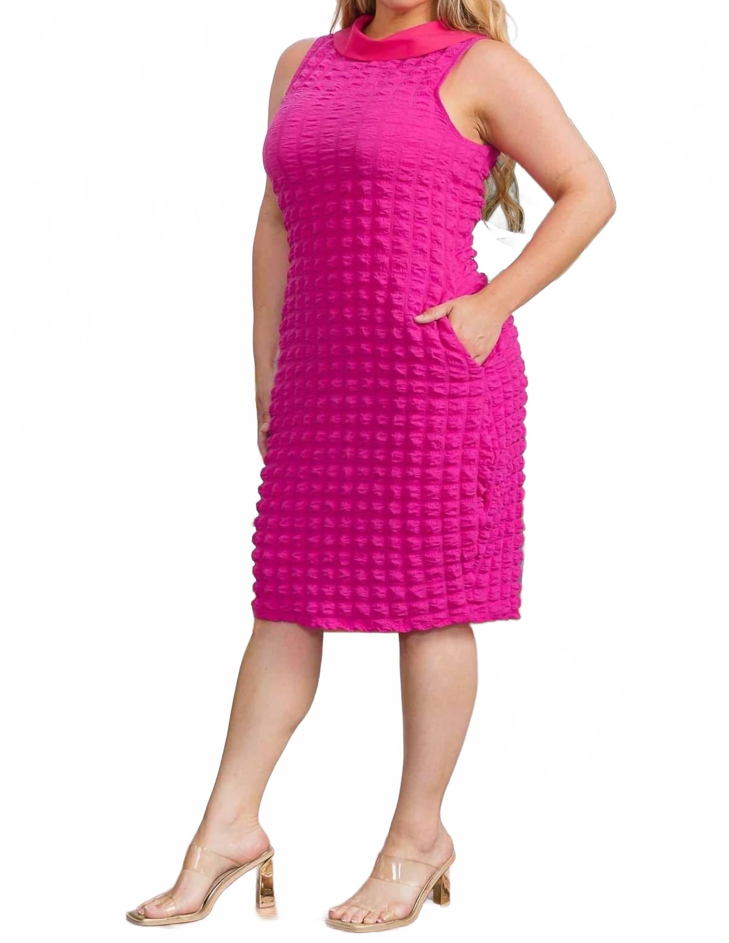 Представляем облегающее платье Collared Popcorn от Karen T Design - фактурное белое платье, идеально подходящее для минималистичного летнего стиля. Это платье миди без рукавов имеет облегающий силуэт, модный вырез горловины и удобную застежку-молнию сзади. Благодаря дополнительным карманам оно сочетает в себе стиль и функциональность. Универсальное и идеально подходит для отпуска.