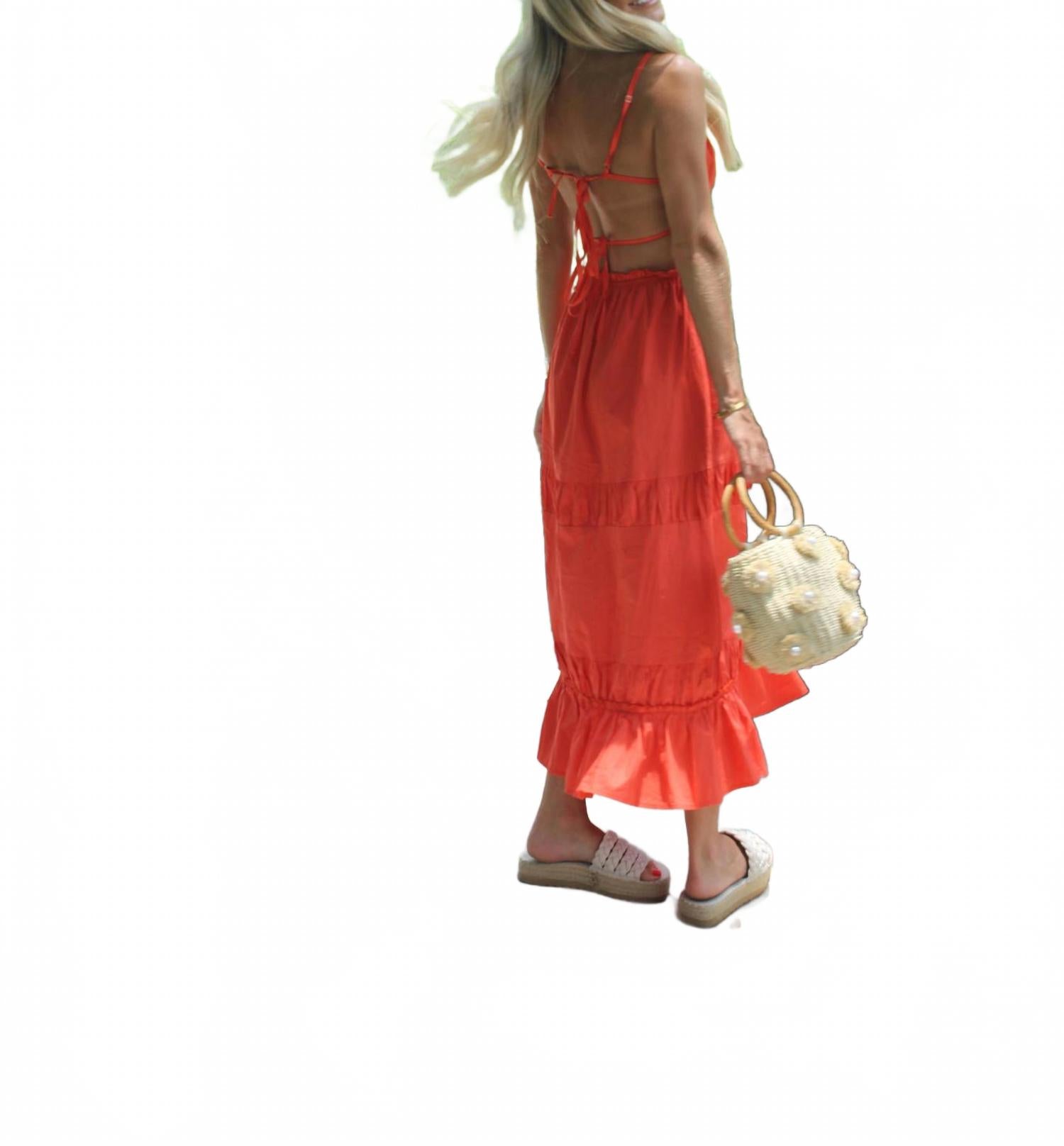 Платье миди настолько универсально, что варианты его ношения безграничны. Представляем платье миди LE LIS Sebastian - эффектное изделие в ярком красно-оранжевом цвете, идеально подходящее для лета в стиле бохо-шик. Это платье А-силуэта с квадратным вырезом, регулируемыми бретелями и изысканной отделкой на спинке. Текстурированный узор и завязка обеспечивают стиль и комфорт. Уход: машинная стирка. Идеально подходит для любого отпуска.