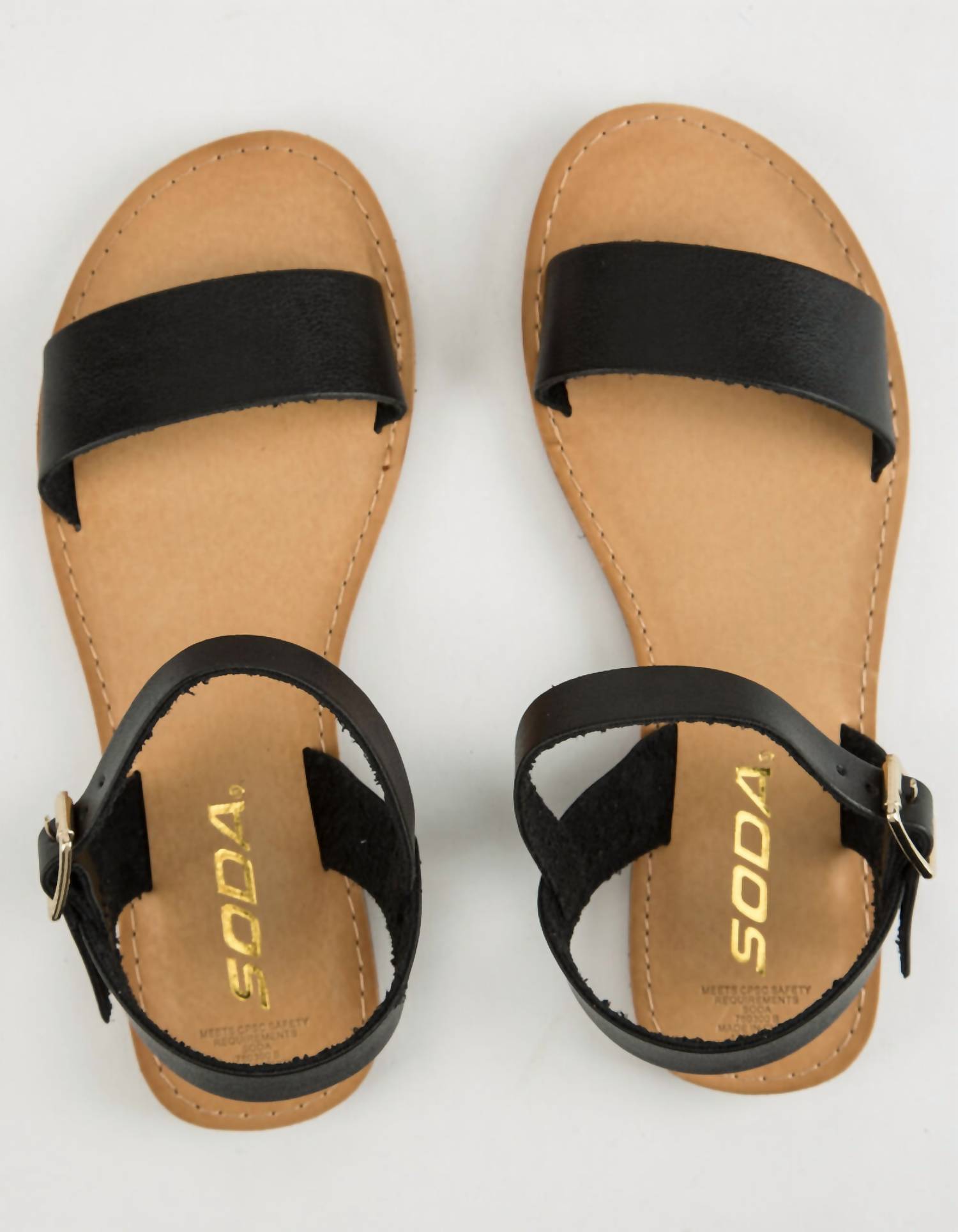 Классические, милые и удобные в повседневной носке. Нам очень нравятся эти сандалии. Представляем женские сандалии с ремешком на щиколотке от SODA, выполненные из гладкой искусственной кожи универсального черного оттенка. Эти сандалии с открытым носком и плоской пяткой обеспечивают максимальный комфорт и идеально подходят для повседневной носки. Эти сандалии идеально подходят для женщин, ценящих элегантный и непринужденный стиль.