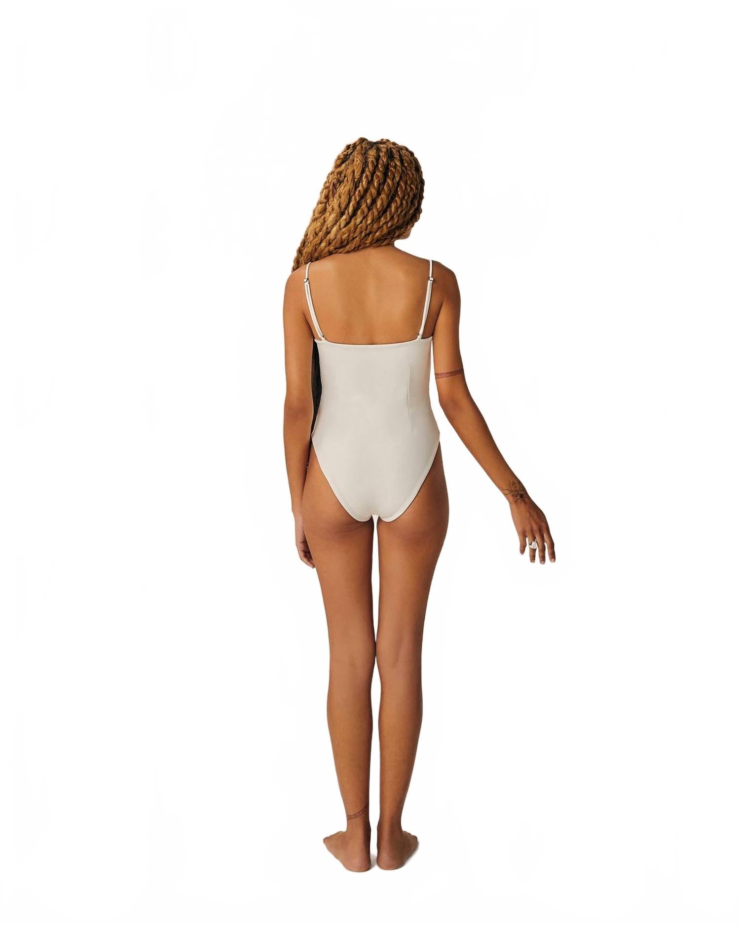 Откройте для себя слитный купальник Crepe Jen от Haight - изысканный выбор для вашего следующего пляжного дня. Этот молочно-белый костюм, изготовленный из 96% полиэстера и 4% эластана, обеспечивает идеальную посадку по размеру и комфортную носку. Однотонный крой и закрытый крой сочетают минимализм с элегантностью, идеально подходя для летнего спортивного стиля.