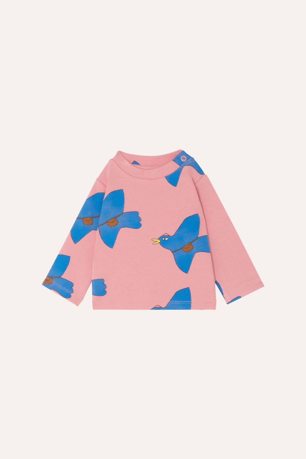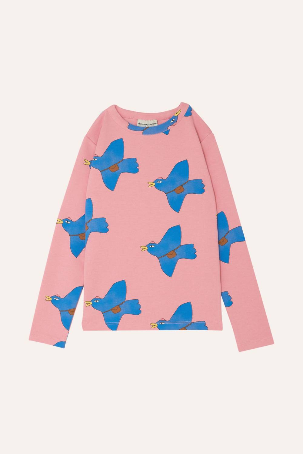 Представляем футболку Pigeons Tee от The Campamento - очаровательную розовую футболку с длинным рукавом, украшенную игривым принтом в виде синего голубя. Футболка изготовлена ​​из 100% органического хлопка и приятна на ощупь. Сделано в Испании и идеально подходит для юных модниц, ценящих стиль и комфорт. Благодаря застежкам на кнопки на плечах (размеры для малышей) эта футболка обеспечивает легкость и практичность при надевании.