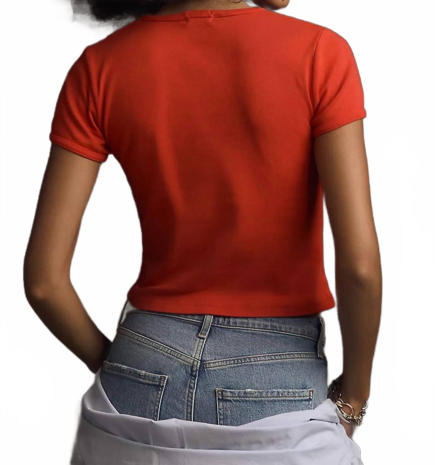 Эта стильная футболка в эффектном цвете станет стильным дополнением к вашей коллекции. Этот женский топ с классическим круглым вырезом и короткими рукавами украшен ярким графическим узором. Без карманов, что обеспечивает элегантный вид, идеально подходит для непринужденного образа. Уход за футболкой прост: стирать в стиральной машине и сушить в разложенном виде.