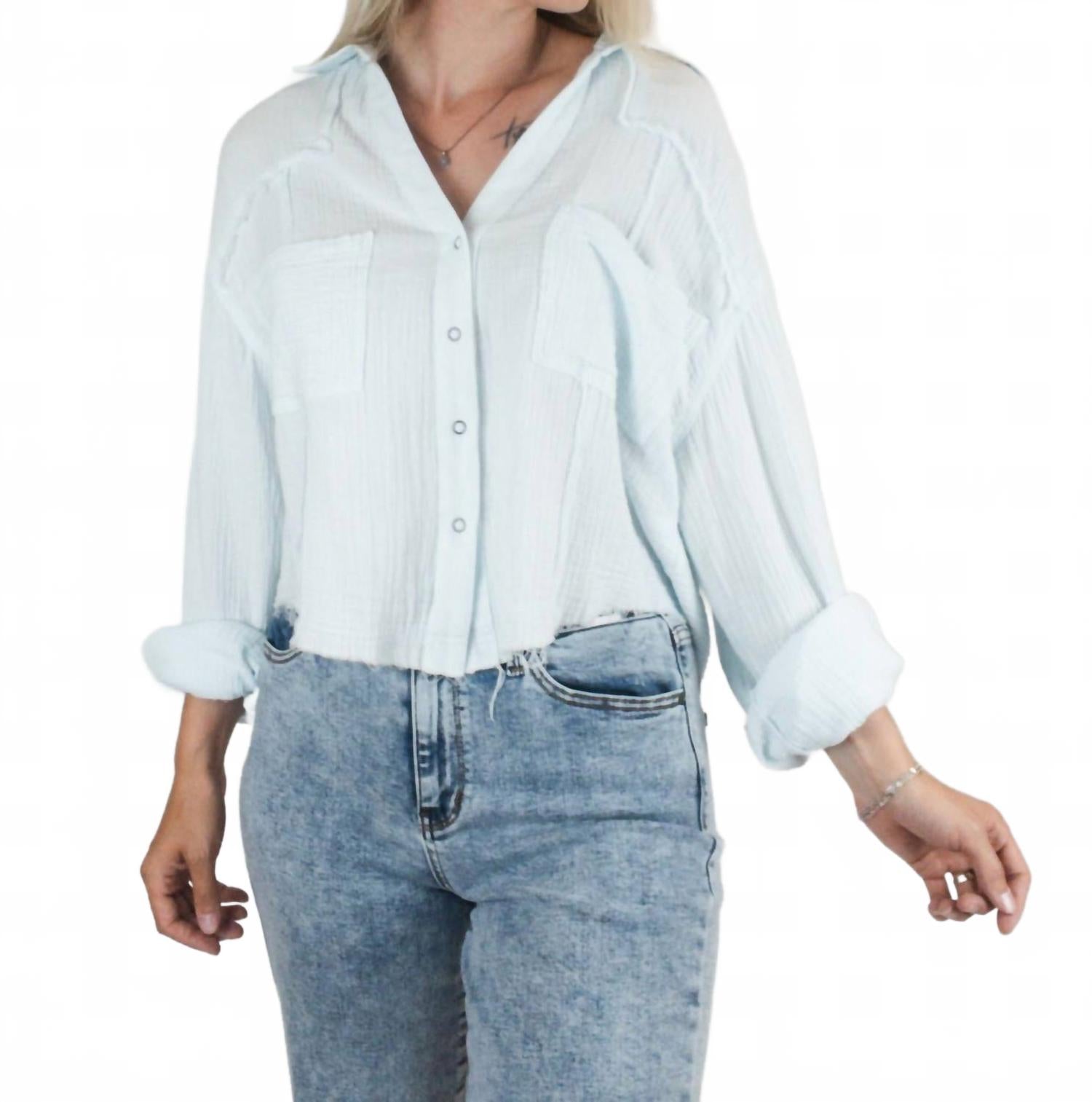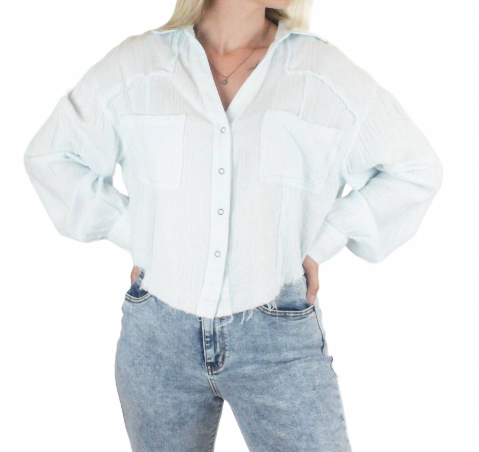 Яркое дополнение к любому гардеробу в светло-голубом оттенке. Изготовлено из комфортной смеси 75% хлопка и 25% полиэстера, обладает восхитительной легкостью благодаря забавному укороченному подолу. Идеально подходит для путешествий и праздничных случаев, имеет классический воротник и удобную застежку на пуговицы. Рекомендации по уходу: ручная стирка для сохранения игривого очарования.