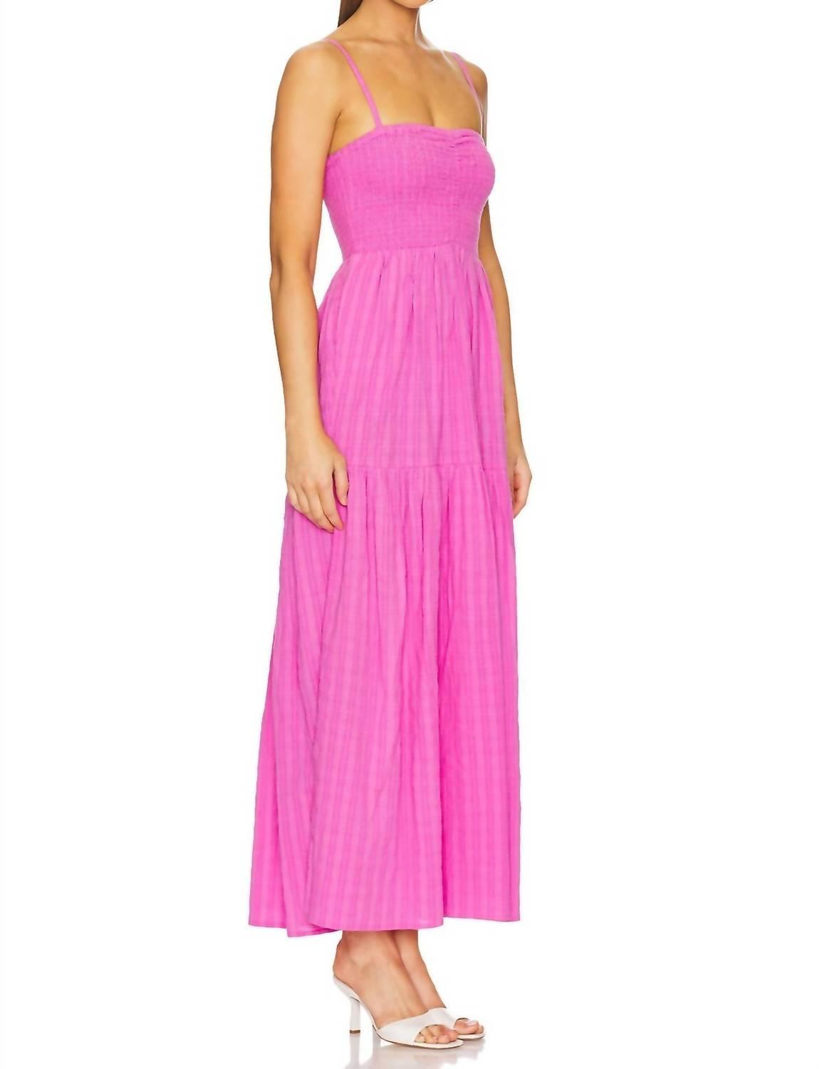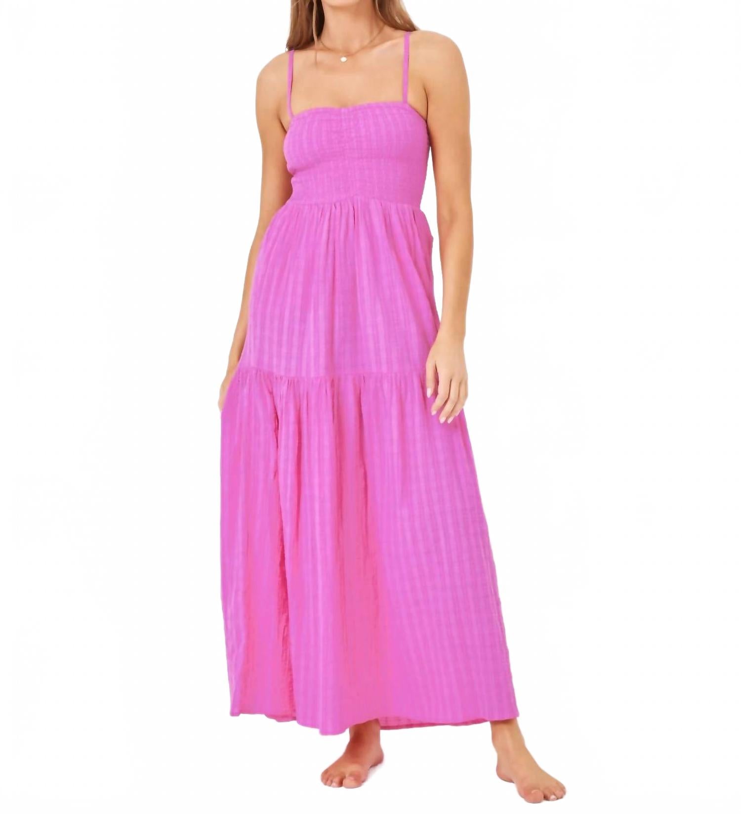 Платье макси, столь же милое, сколь и удобное. Платье Mallorca от L*SPACE - элегантное макси-платье малинового цвета с фактурным рисунком. Это платье из 100% хлопка с регулируемыми тонкими бретельками, присборенным лифом и струящейся однослойной юбкой воплощает изящество и стиль. Длина платья - 145 см, удобная застежка-липучка. Уход за этим прекрасным платьем: ручная стирка в холодной воде и сушка на горизонтальной поверхности.