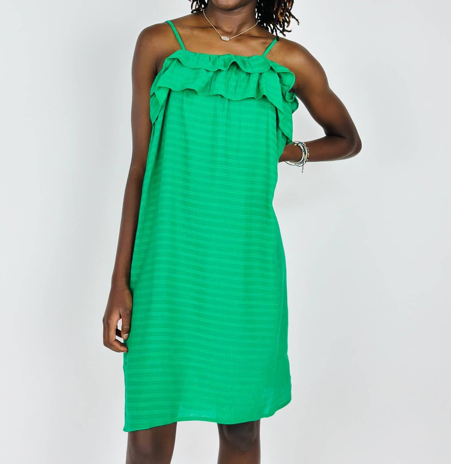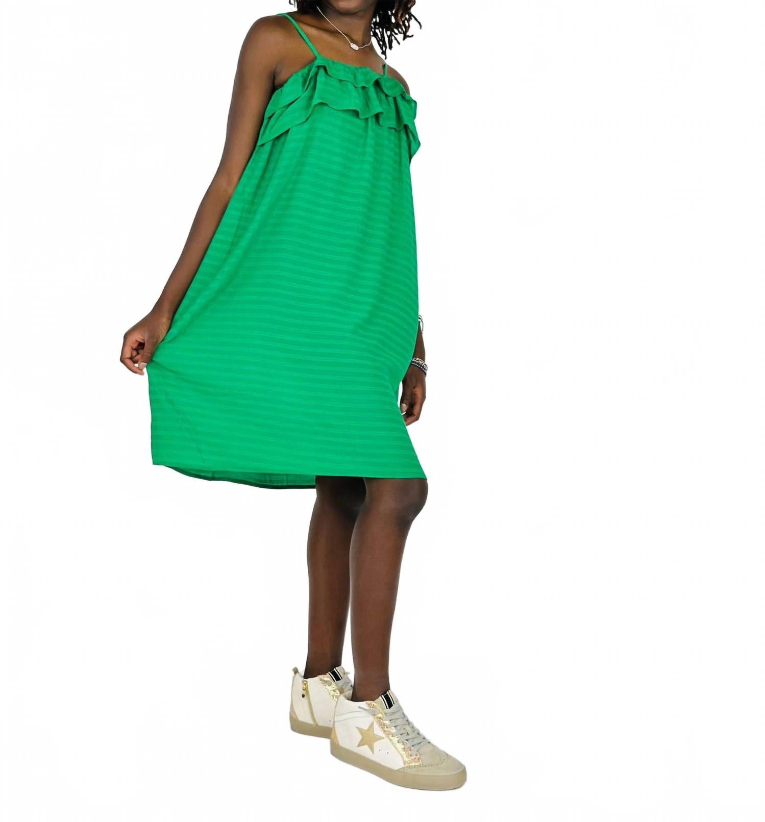 Представляем женское платье-майку с оборками от Compania Fantastica - прекрасный выбор как для повседневных случаев, так и для праздничных вечеринок. Это очаровательное платье с квадратным вырезом и тонкими бретельками идеально подходит для весеннего сезона. Зеленый полосатый узор добавляет игривости стилю бохо-шик. Воспользуйтесь этим универсальным платьем для выпускного вечера и сделайте свой День святого Патрика особенным.