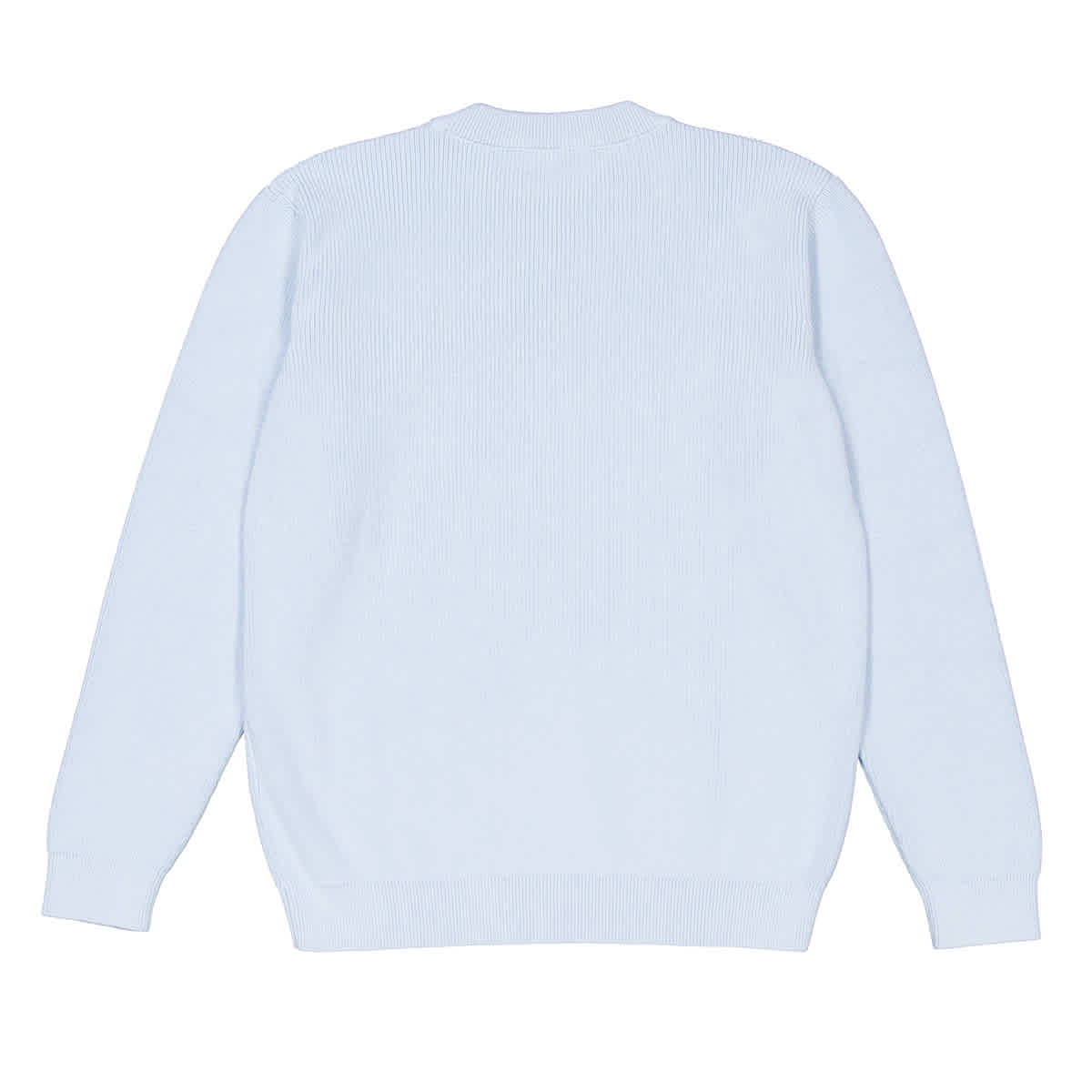 Топы для девочек от Young Versace. Категория: Кардиганы и свитера. Цвет: синий. Этот светло-голубой свитер для девочек украшен культовой вышивкой Versace 1978 года спереди, которая добавляет нотку роскоши в повседневный образ. Изготовлен из мягкого хлопкового трикотажа в рубчик, имеет круглый вырез горловины и длинные рукава. Состав: 100% хлопок, 100% вискоза, 100% полиэстер. Сделано в Италии.