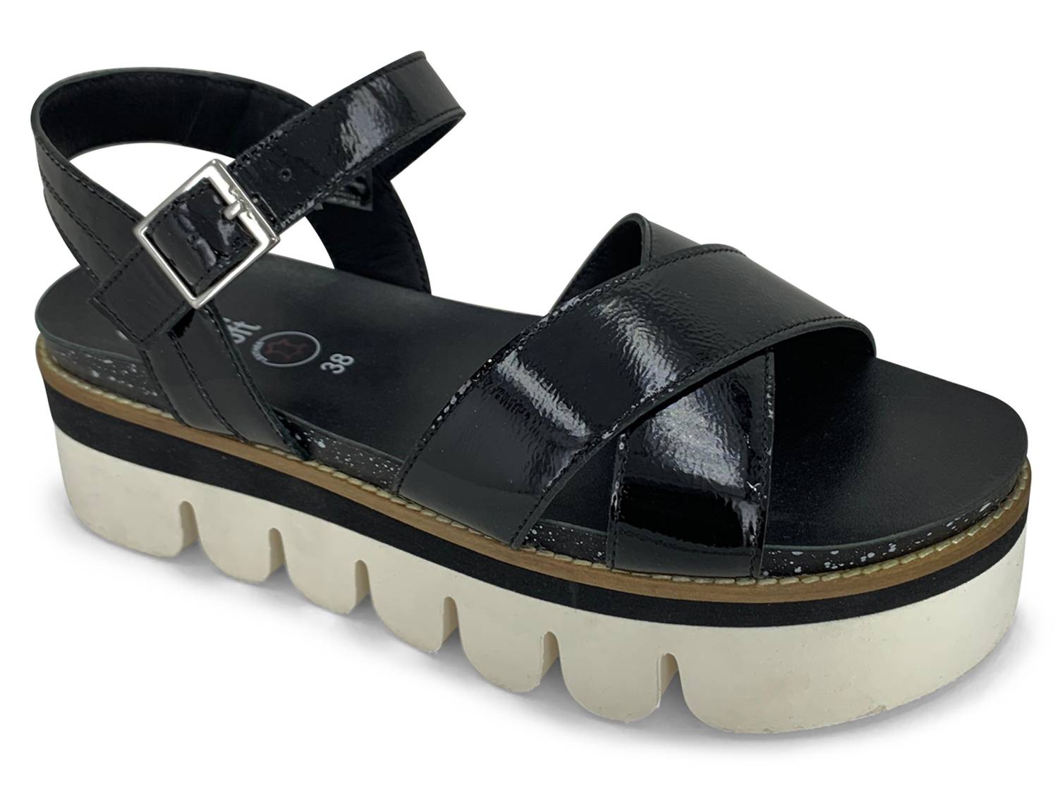 Эти сандалии с элегантными перекрещивающимися ремешками из мягкой кожи и регулируемой пряжкой обеспечивают индивидуальную посадку. Они отличаются легкой, но поддерживающей стелькой с мягкой амортизацией, идеально подходящей для ваших любимых занятий. Высота каблука составляет около 5 см, платформа - 5 см, а носок - открытый.