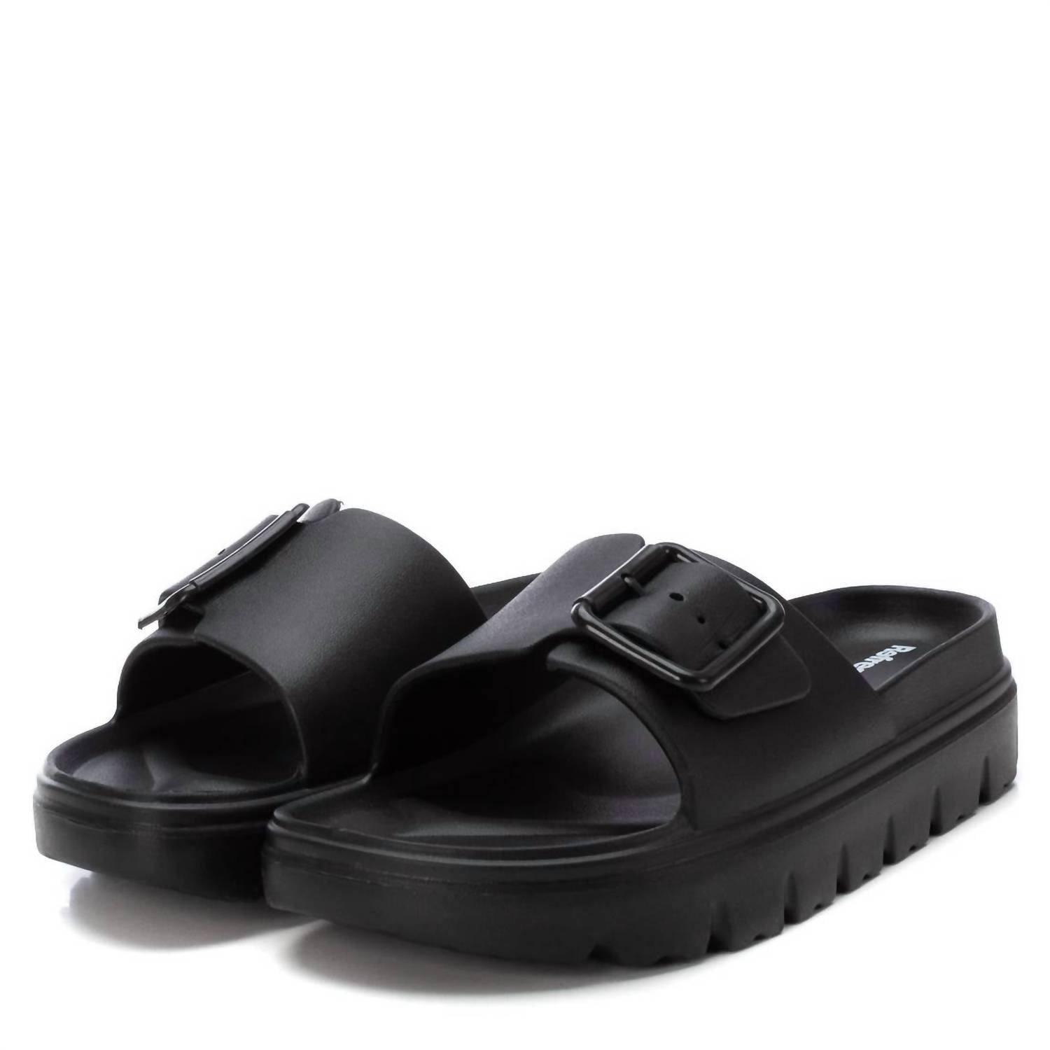 Струящиеся платья, укороченные брюки и даже комбинезоны... эти сандалии подойдут к любому наряду! Представляем женские сандалии Refresh от Xti - идеальное сочетание стиля и комфорта на любой случай. Эти черные сандалии с круглым носком и стильным массивным каблуком, при этом оставаясь плоскими (2,5 см) для удобства ношения. Созданные для женщин, они гармонично дополнят любой образ, будь то работа или встреча с друзьями.