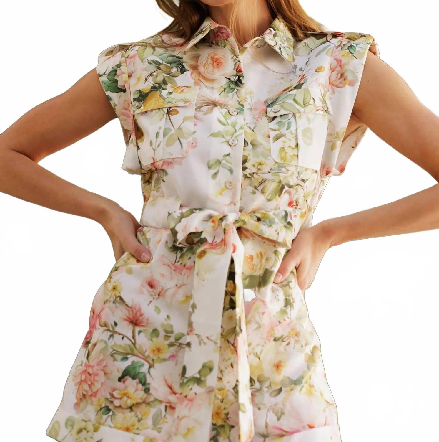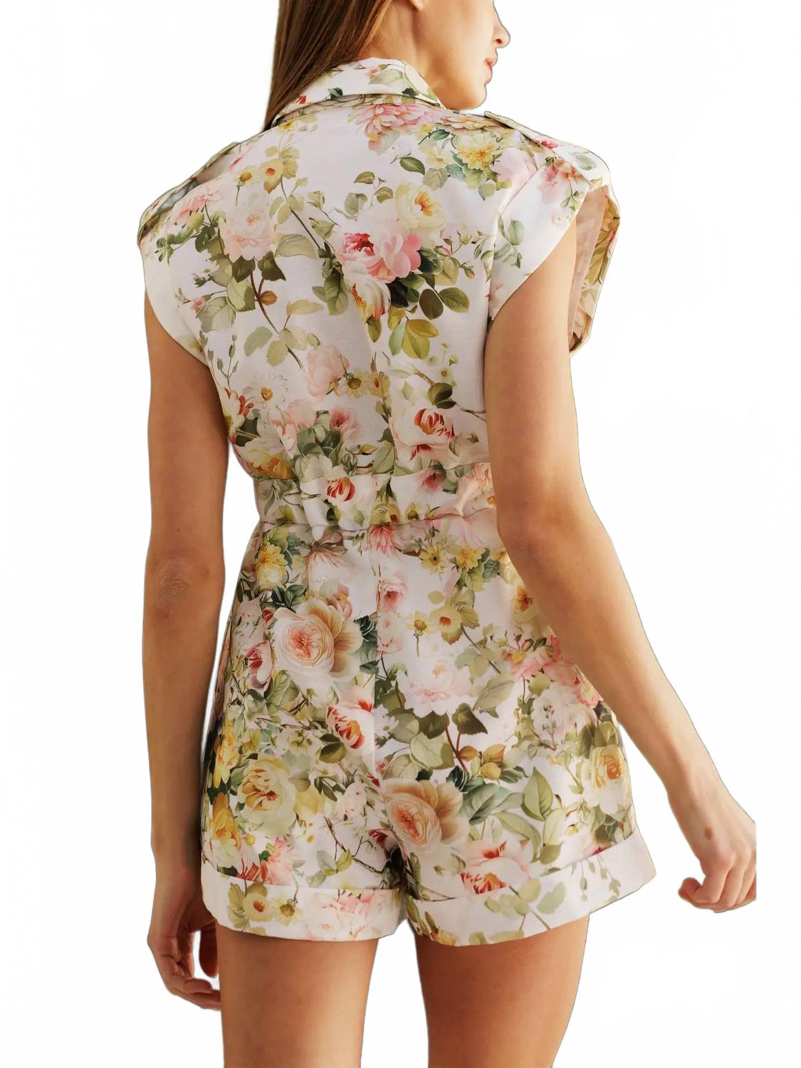 Цветочный хлопковый ромпер в белых цветах ENDLESS BLU.