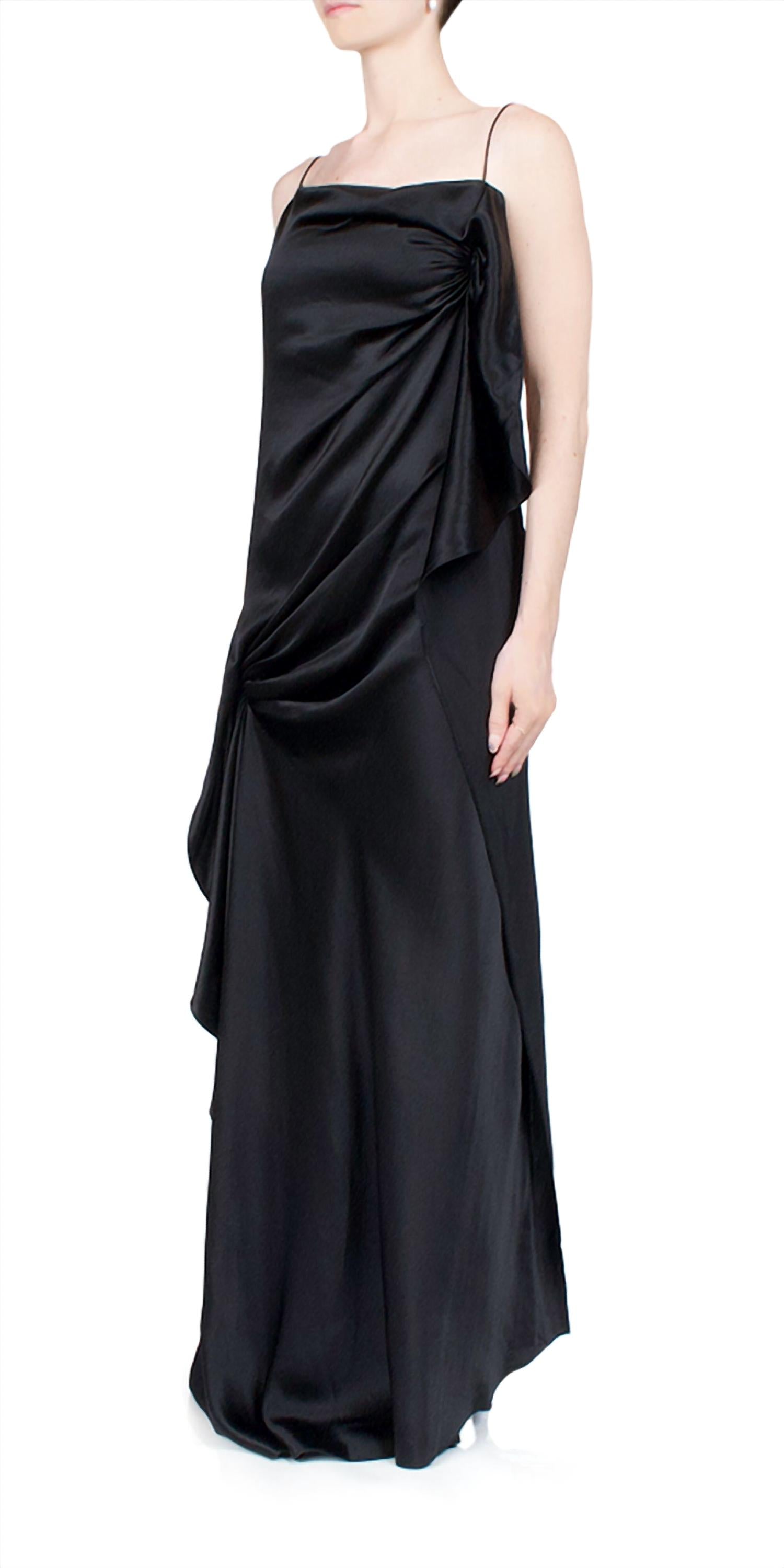 Представляем макси-платье Cusco Draped Silk от Christopher Esber - великолепный выбор для любого торжественного случая. Это платье-кафтан на тонких бретельках выполнено из 100% шелка, создавая роскошную драпировку в однотонном черном цвете. Открытая спина и элегантная застежка-молния придают платью элегантный вид.