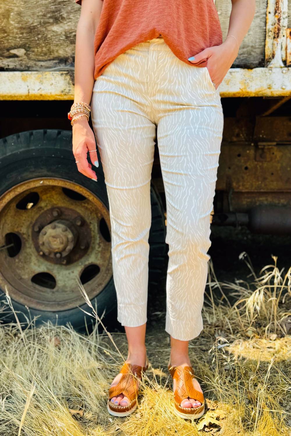 Представляем брюки Esqualo Zebra - универсальное дополнение к летнему гардеробу, сочетающее комфорт и вневременной стиль. Эти кремовые брюки облегающего кроя из смеси 78% вискозы, 9% нейлона и 3% спандекса оснащены карманами спереди и сзади для практичности. Прямой крой с анималистичным принтом идеально подходит для путешествий и работы. Уход прост: машинная стирка в холодной воде на щадящем режиме и сушка на веревке.