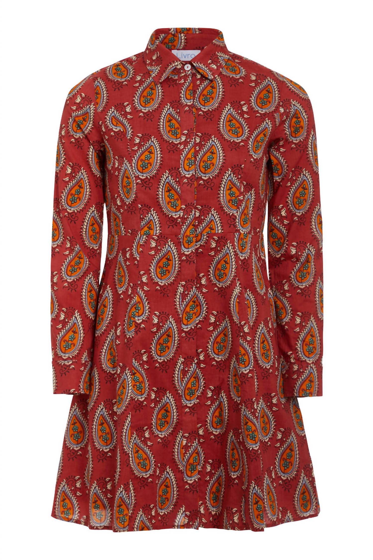 Идеальное мини-платье для теплых месяцев. Оцените элегантность мини-платья Stadium от Livro в цвете Paisley Drops - прекрасный выбор для любой помолвки. Это мини-платье с длинными рукавами и стильным А-силуэтом выполнено из 100% хлопка для комфорта и воздухопроницаемости. Платье имеет узорчатый крой, удобные карманы и классический воротник-стойку. Застежка: пуговицы. Идеально дополнит ваш рабочий гардероб этой весной.