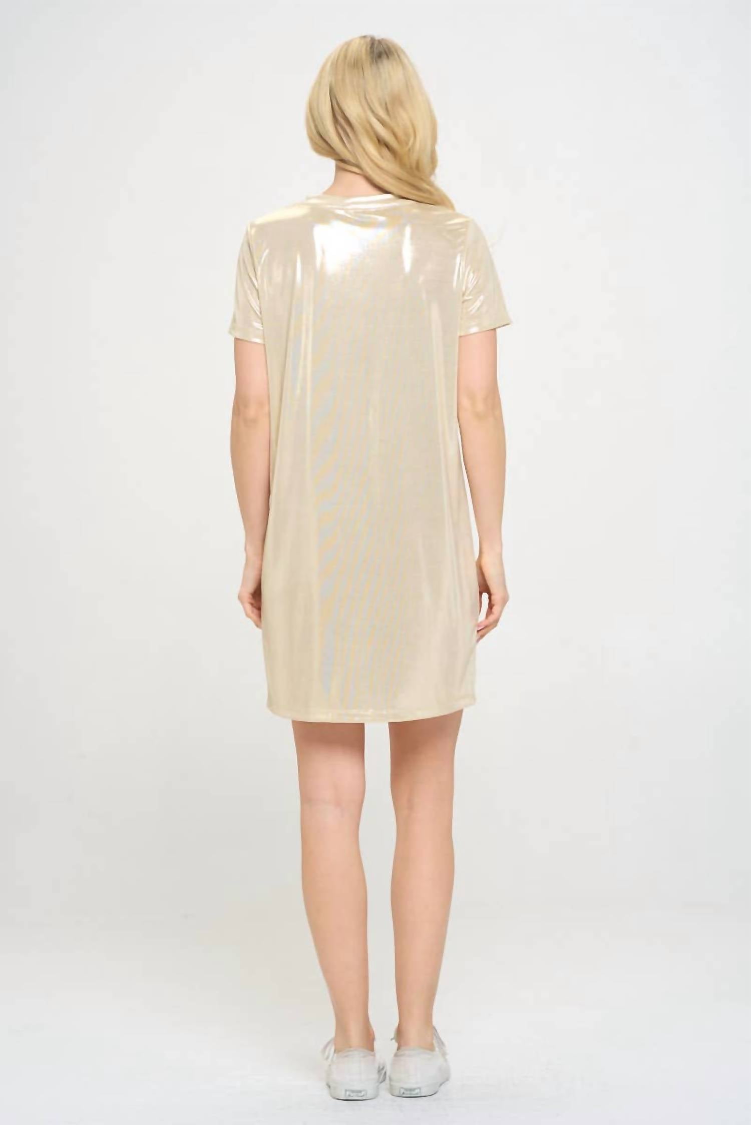 Представляем платье с короткими рукавами Metallic от reneec. - шикарное мини-платье песочного цвета, сочетающее элегантность и комфорт. Это стильное изделие с классическим круглым вырезом выполнено из смеси 95% полиэстера и 5% спандекса. Это платье рубашечного силуэта с удобной застежкой-липучкой с гордостью произведено в США. Идеально подходит для универсального образа.